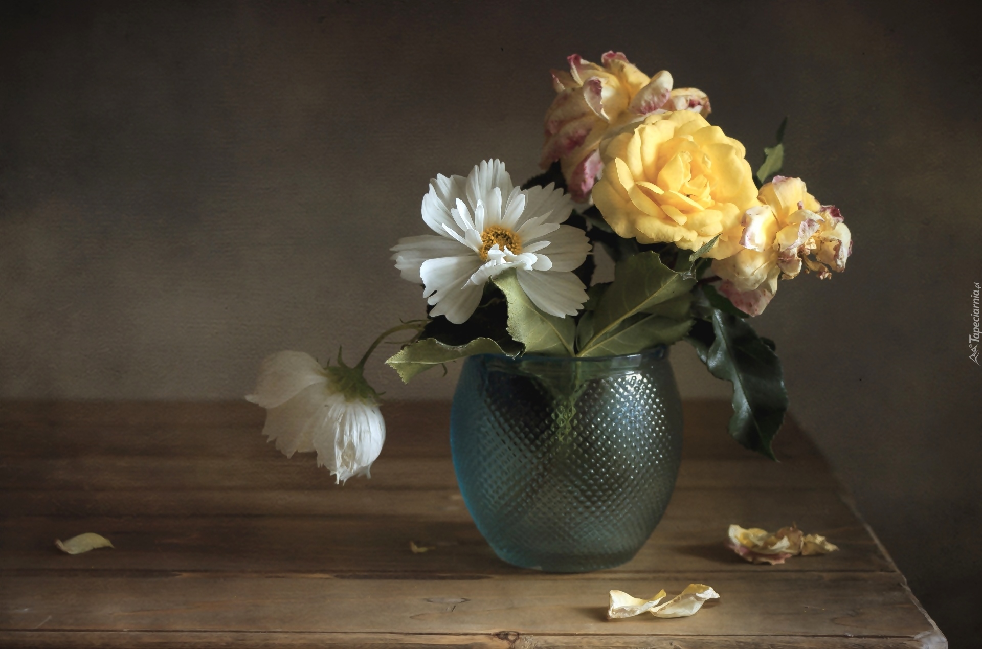 Edytor tapety: Przekwitnięte kwiaty w wazoniku