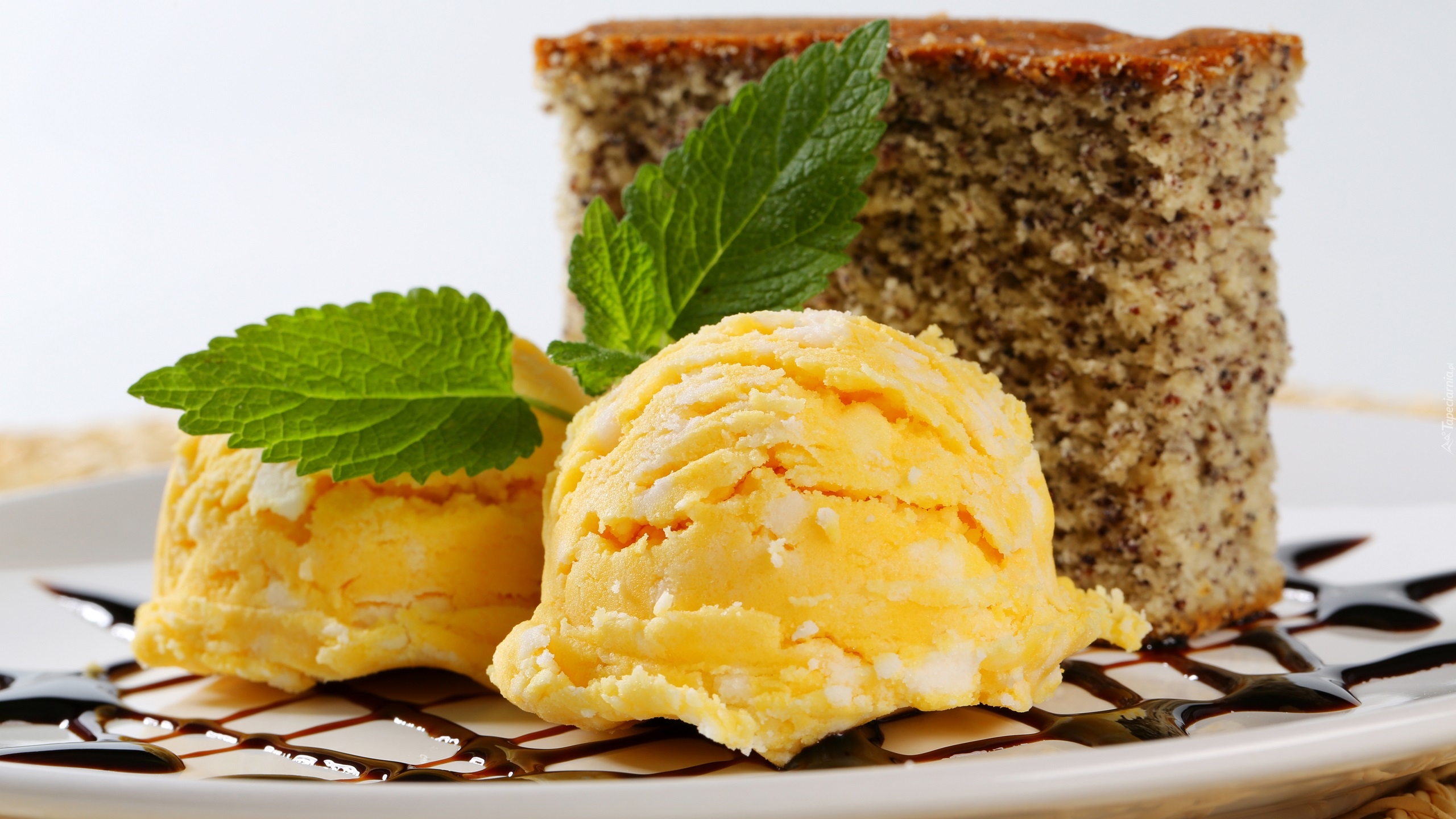 Edytor tapety: Porcja ciasta i gałki lodów na talerzu