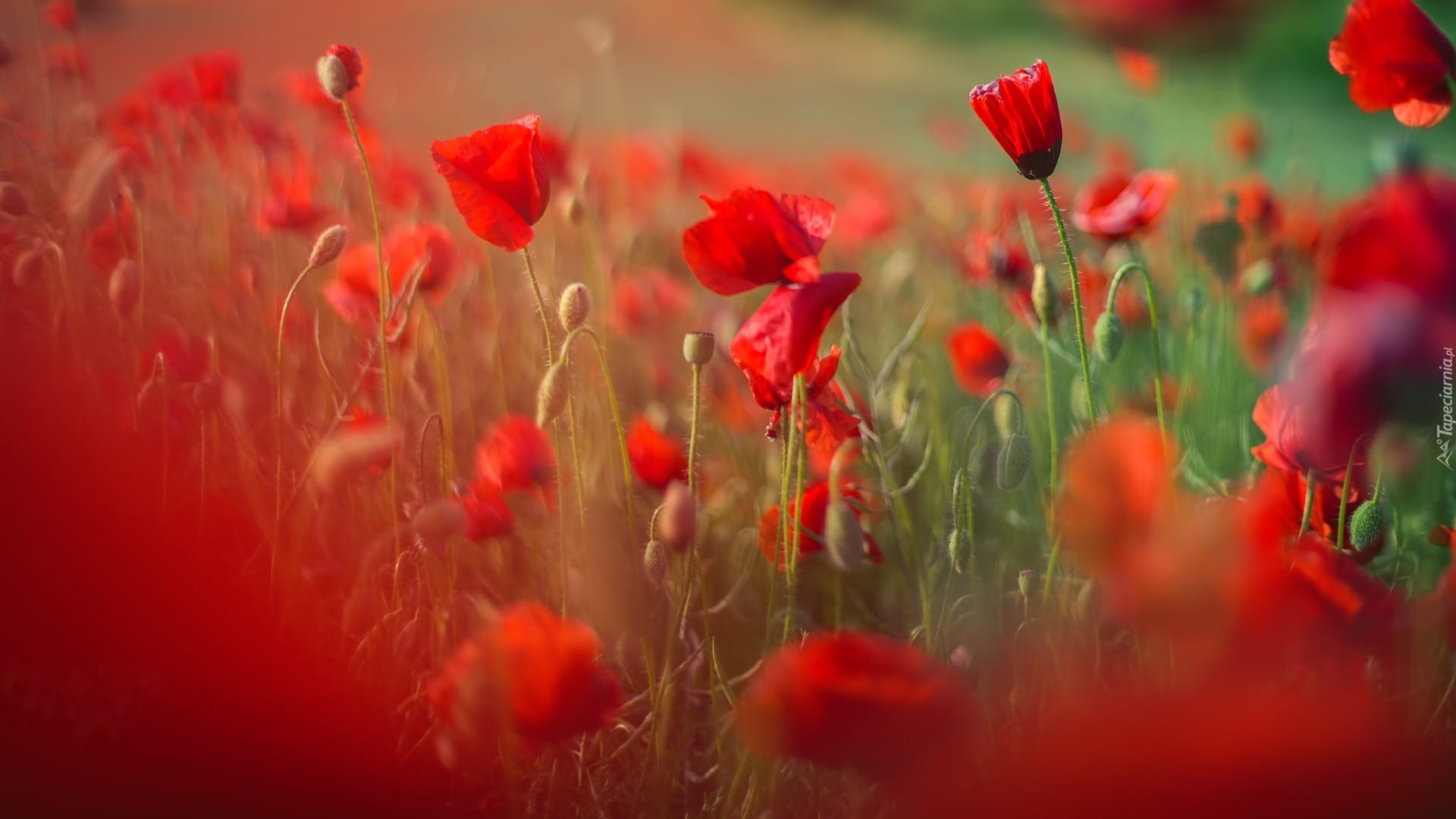 Edytor tapety: Czerwone maki w rozmyciu