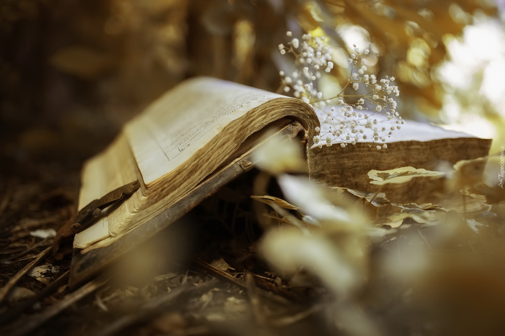 Edytor tapety: Gałązka gipsówki położona na otwartej książce