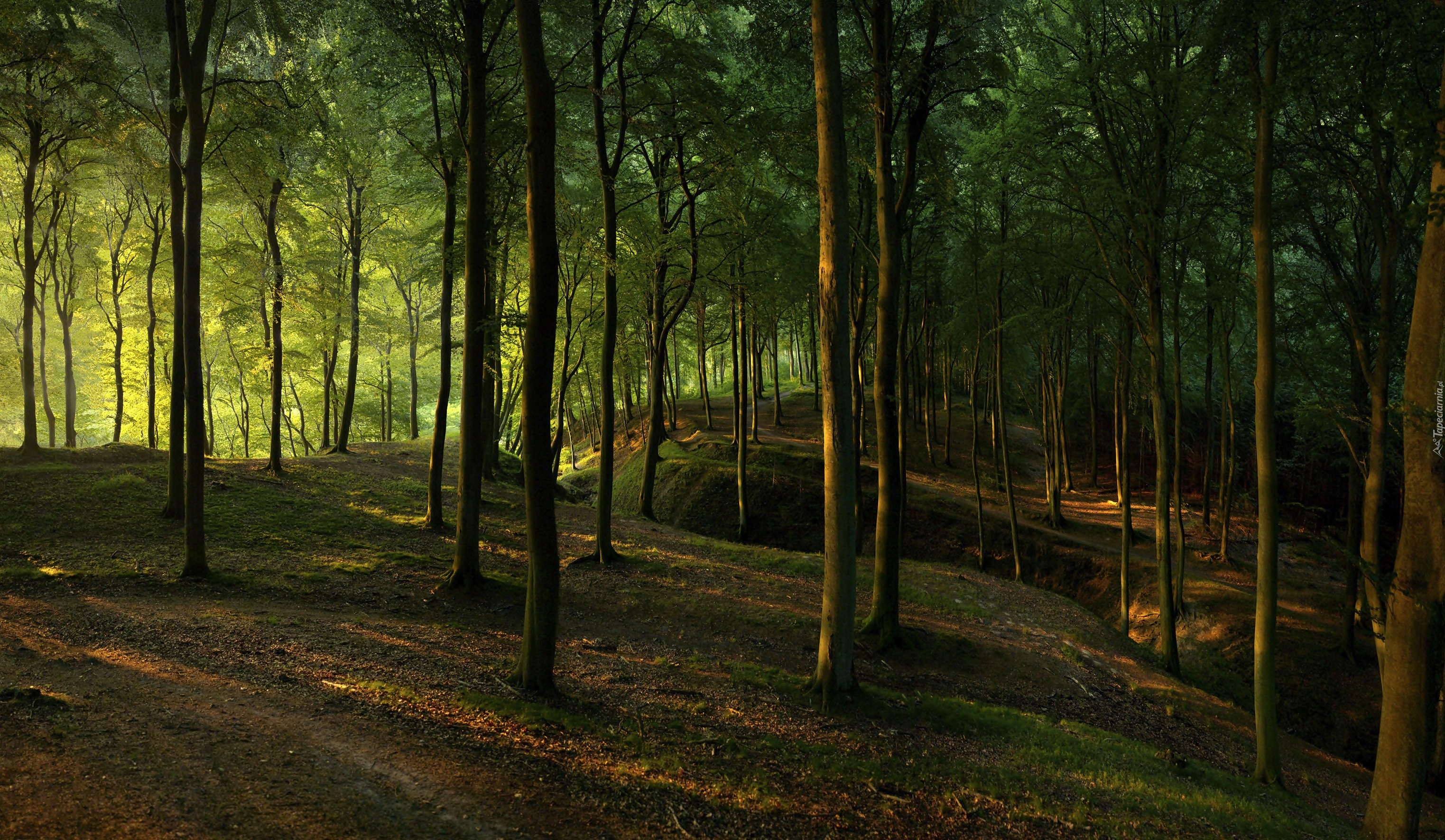 Edytor tapety: Promienie światła wpadają do lasu