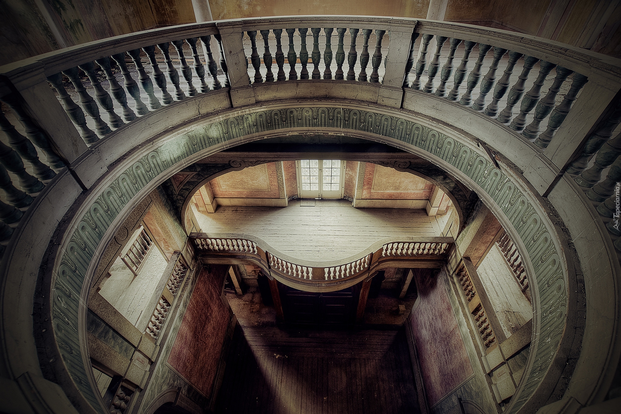 Edytor tapety: Widok z wewnętrznego balkonu w opuszczonym portugalskim pałacu