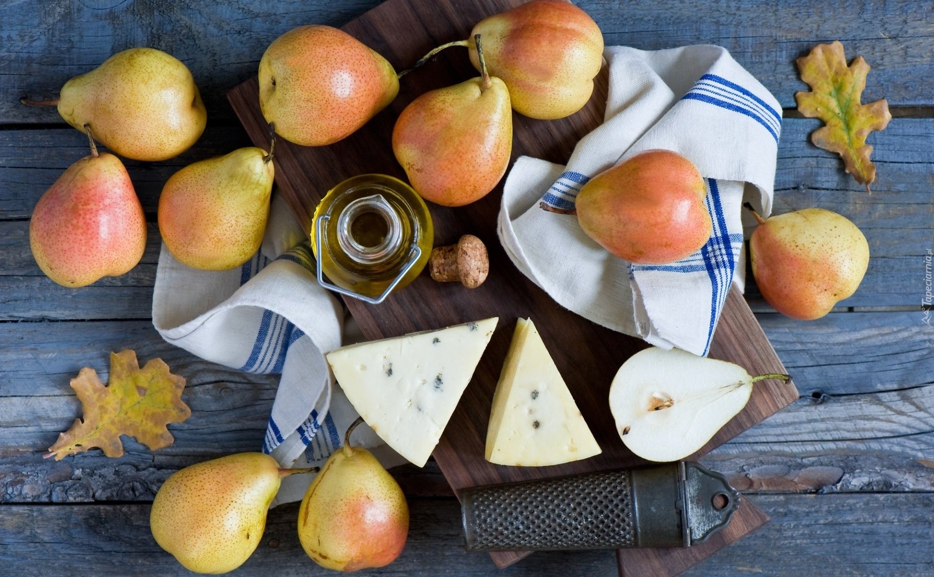 Edytor tapety: Gruszki z serem pleśniowym na desce