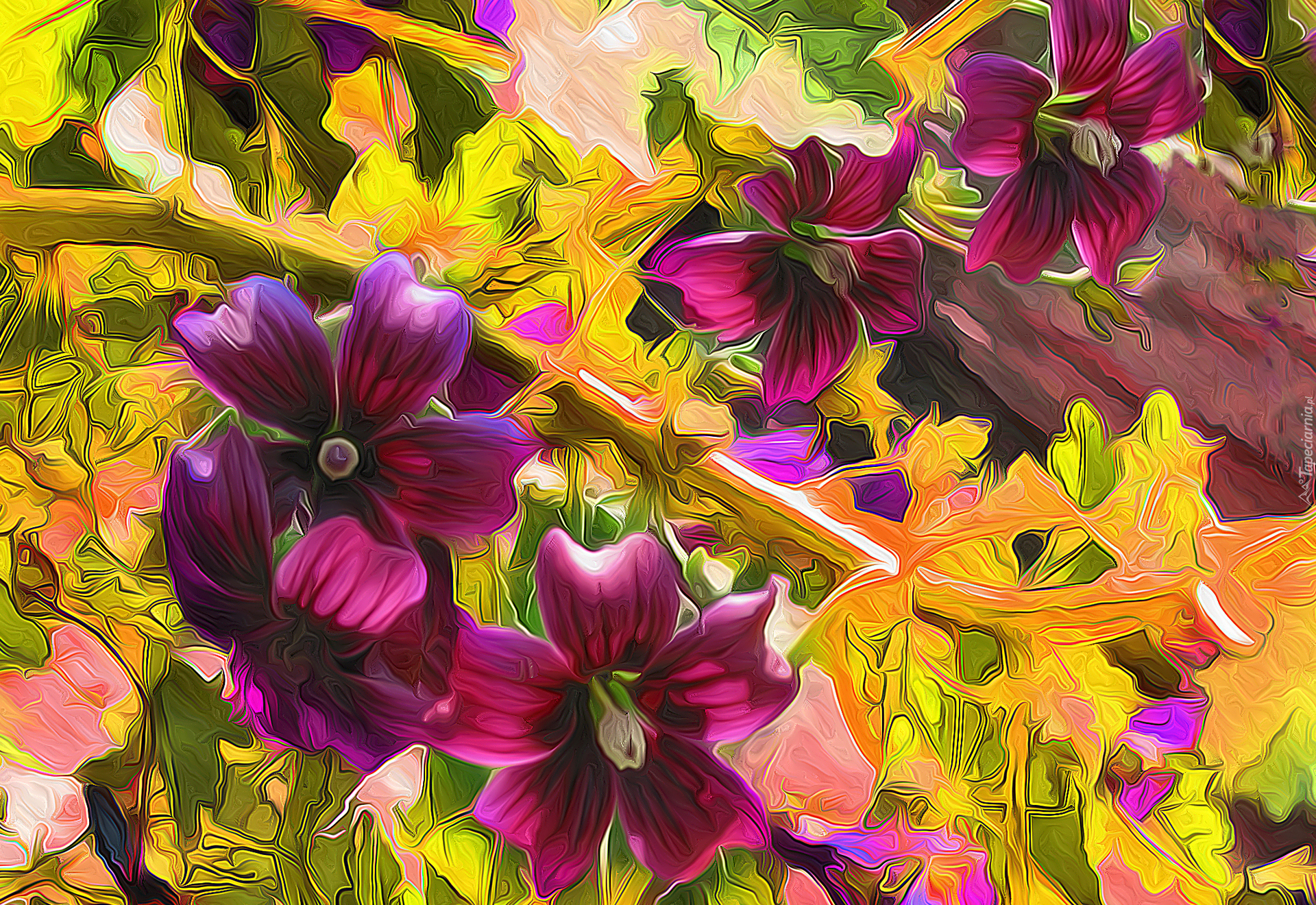 Edytor tapety: Kolorowe kwiaty w grafice