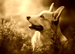 Edytor tapety: Pies rasy welsh corgi pembroke we wrzosach