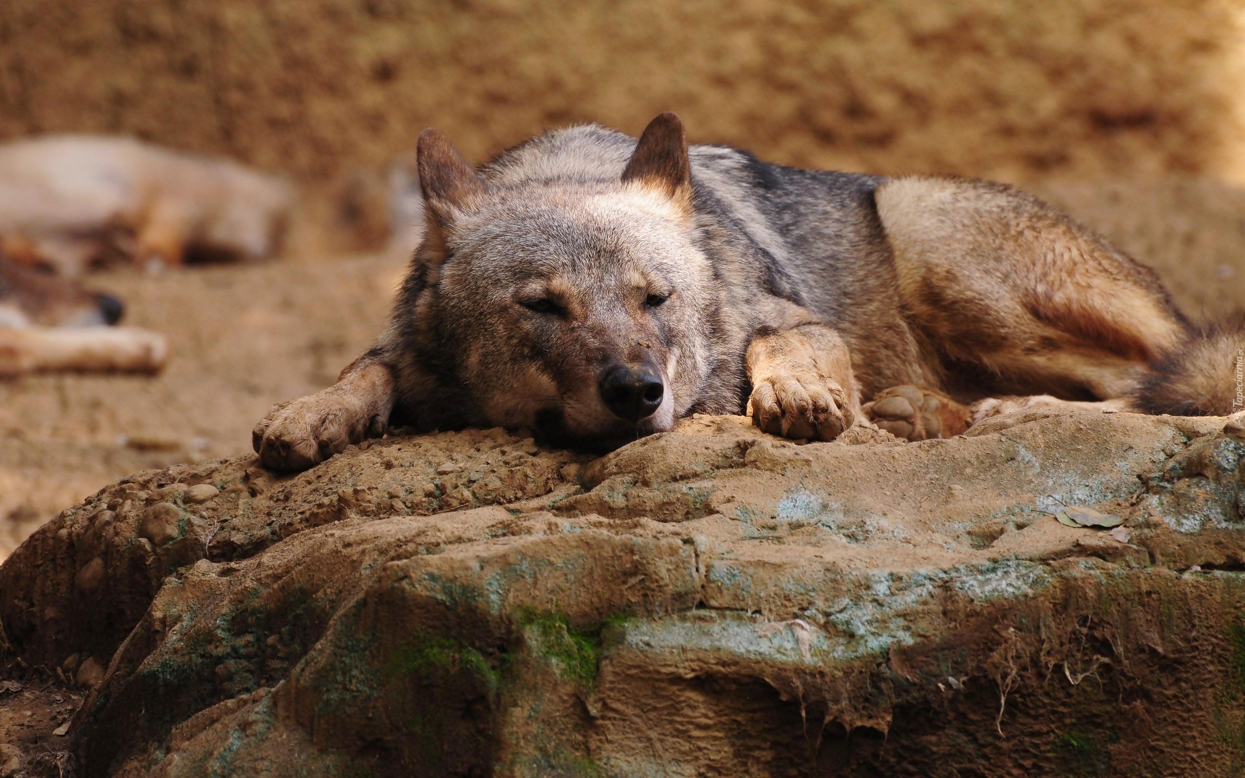 Edytor tapety: Wilk zasnął na skale