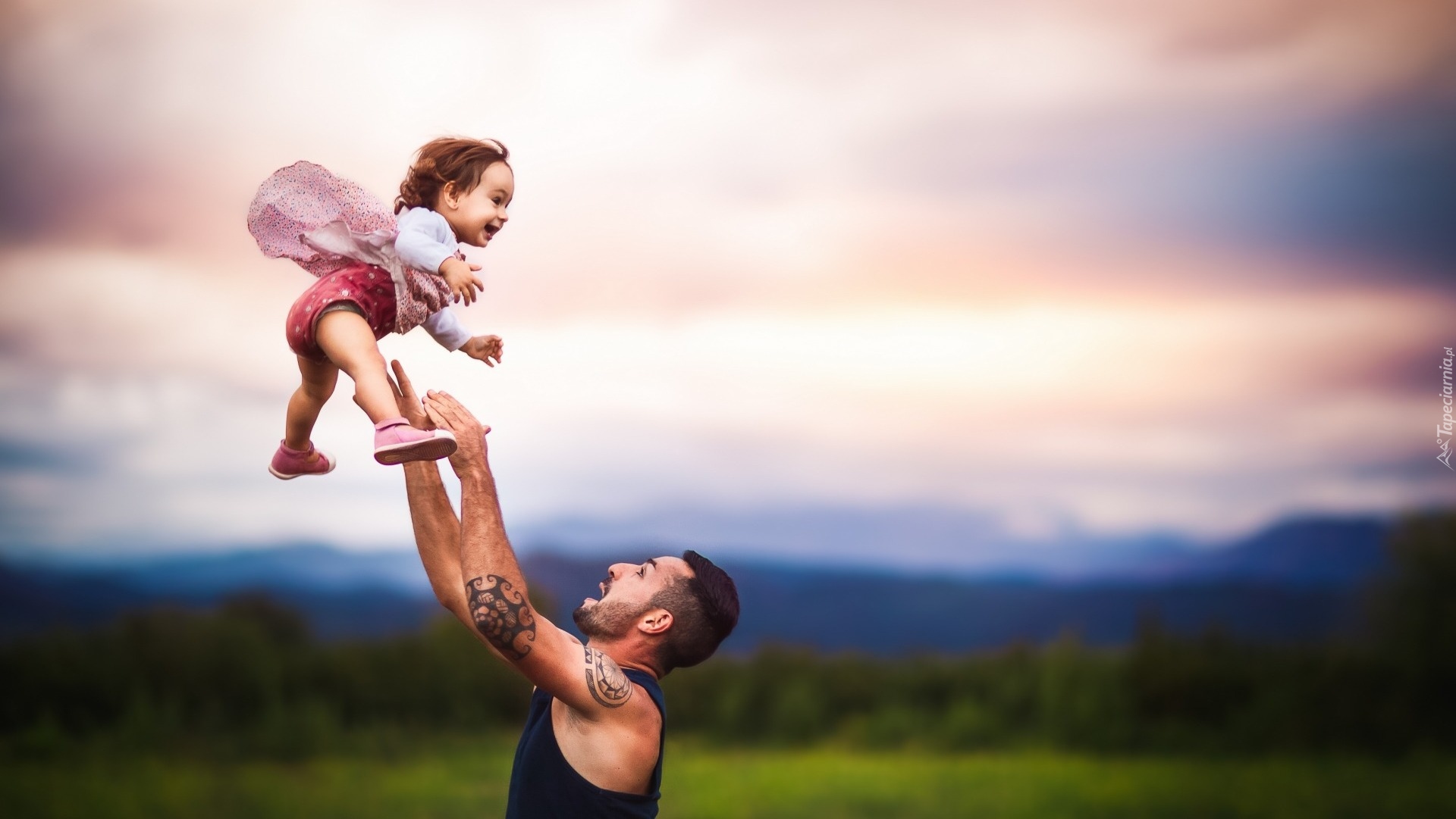 Edytor tapety: Mężczyzna podrzuca dziecko do góry