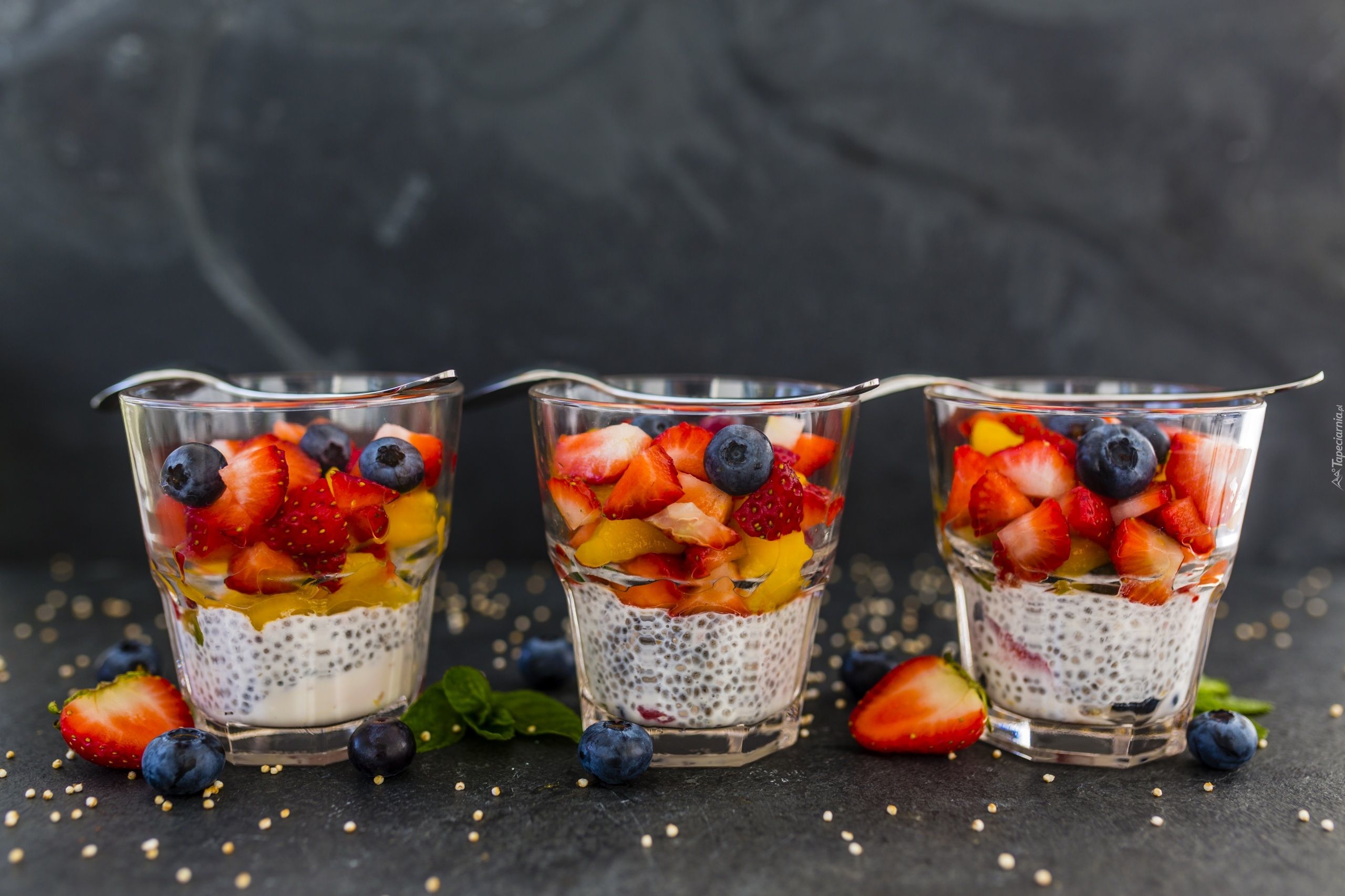 Edytor tapety: Jogurtowy deser z owocami w szklankach