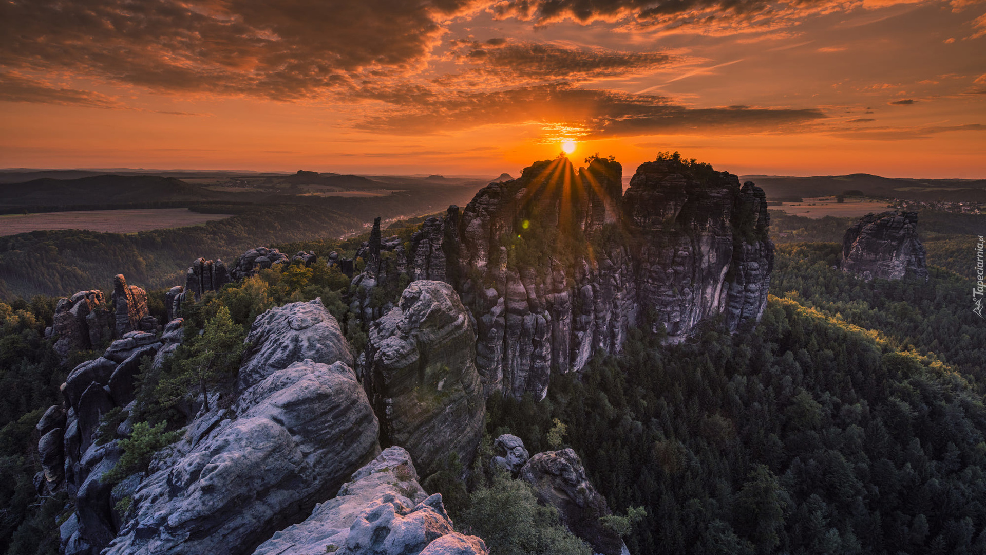 Edytor tapety: Góry Połabskie w Saskiej Szwajcarii o zachodzie słońca