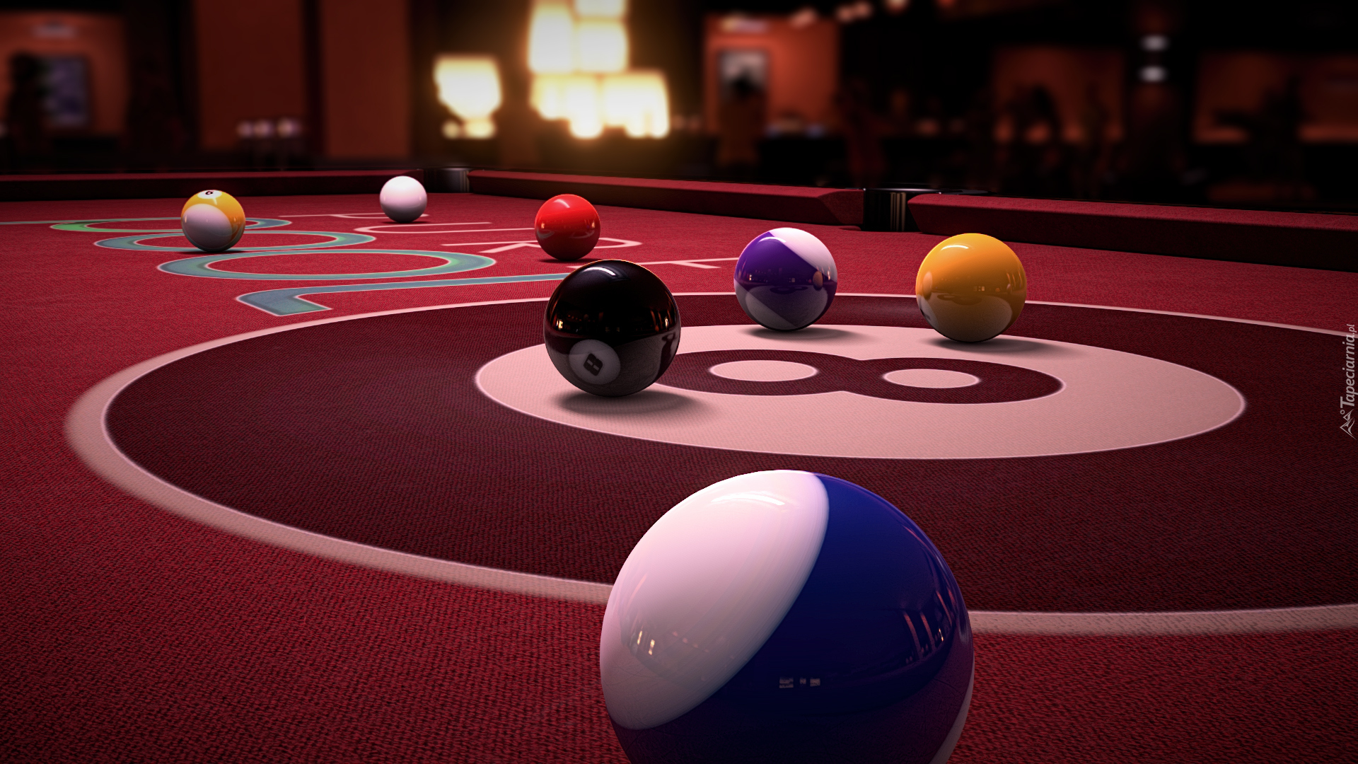 Edytor tapety: Stół bilardowy z kolorowymi bilami