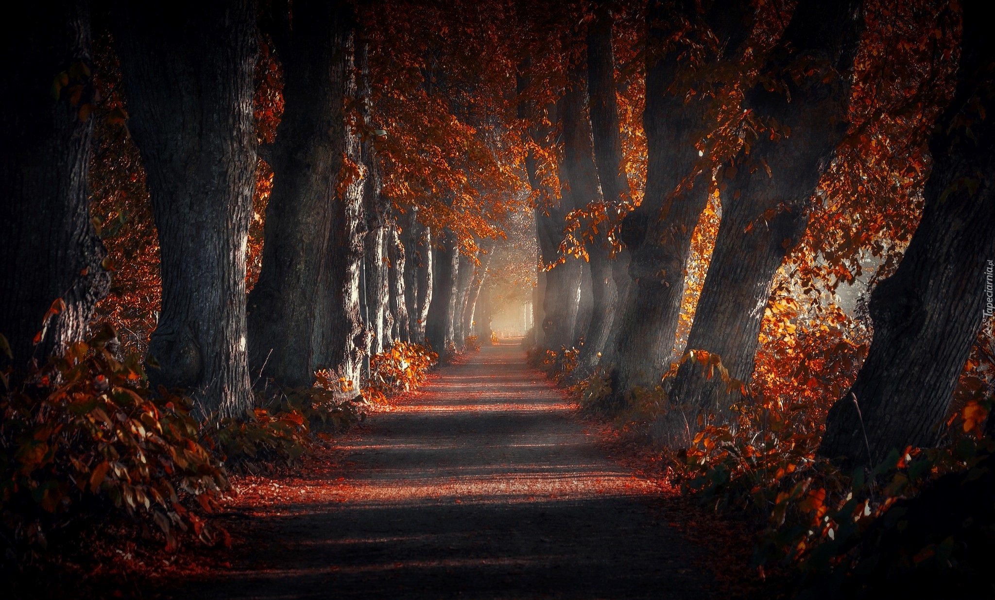 Edytor tapety: Droga między drzewami