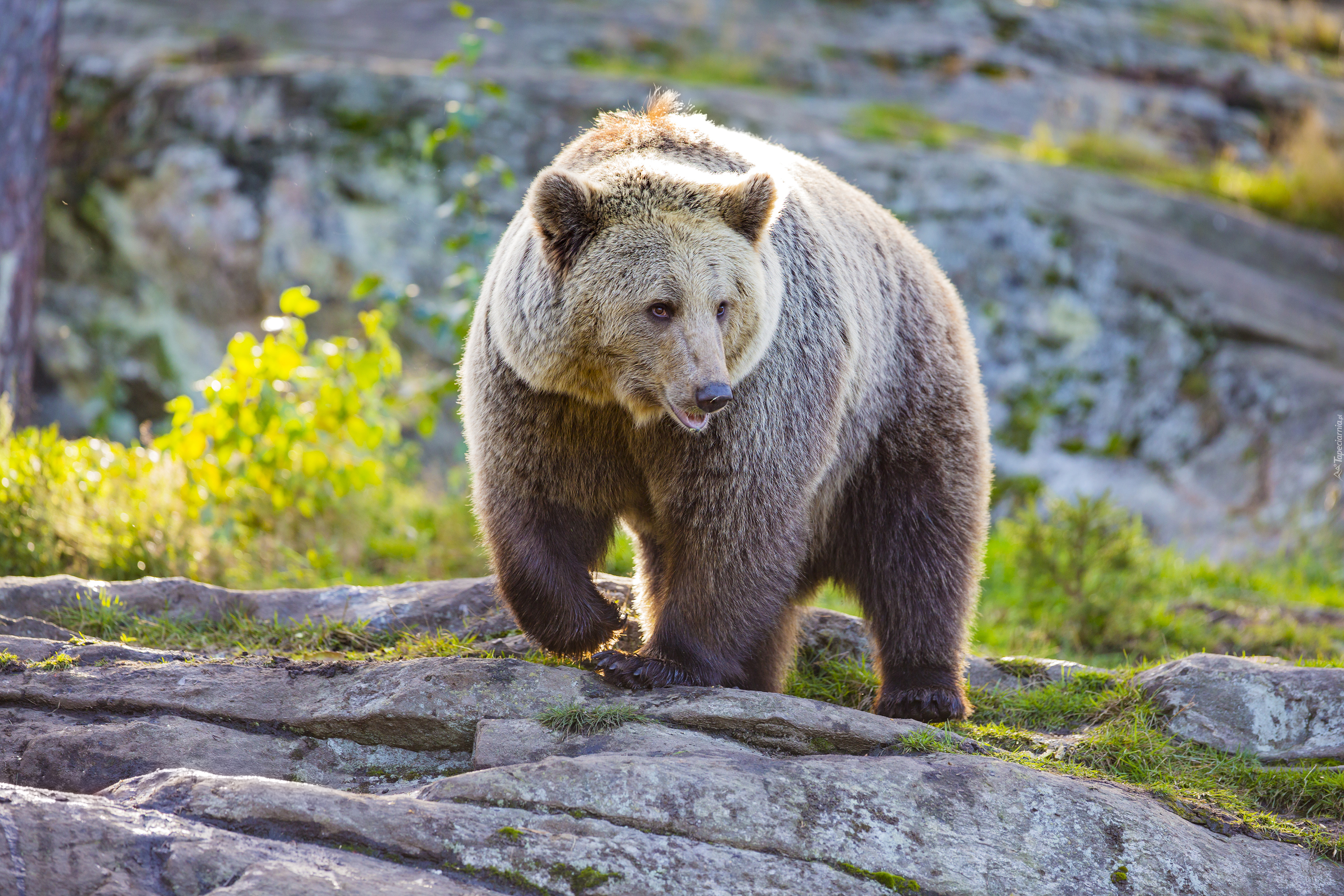 Edytor tapety: Niedźwiedź brunatny spaceruje po skałach