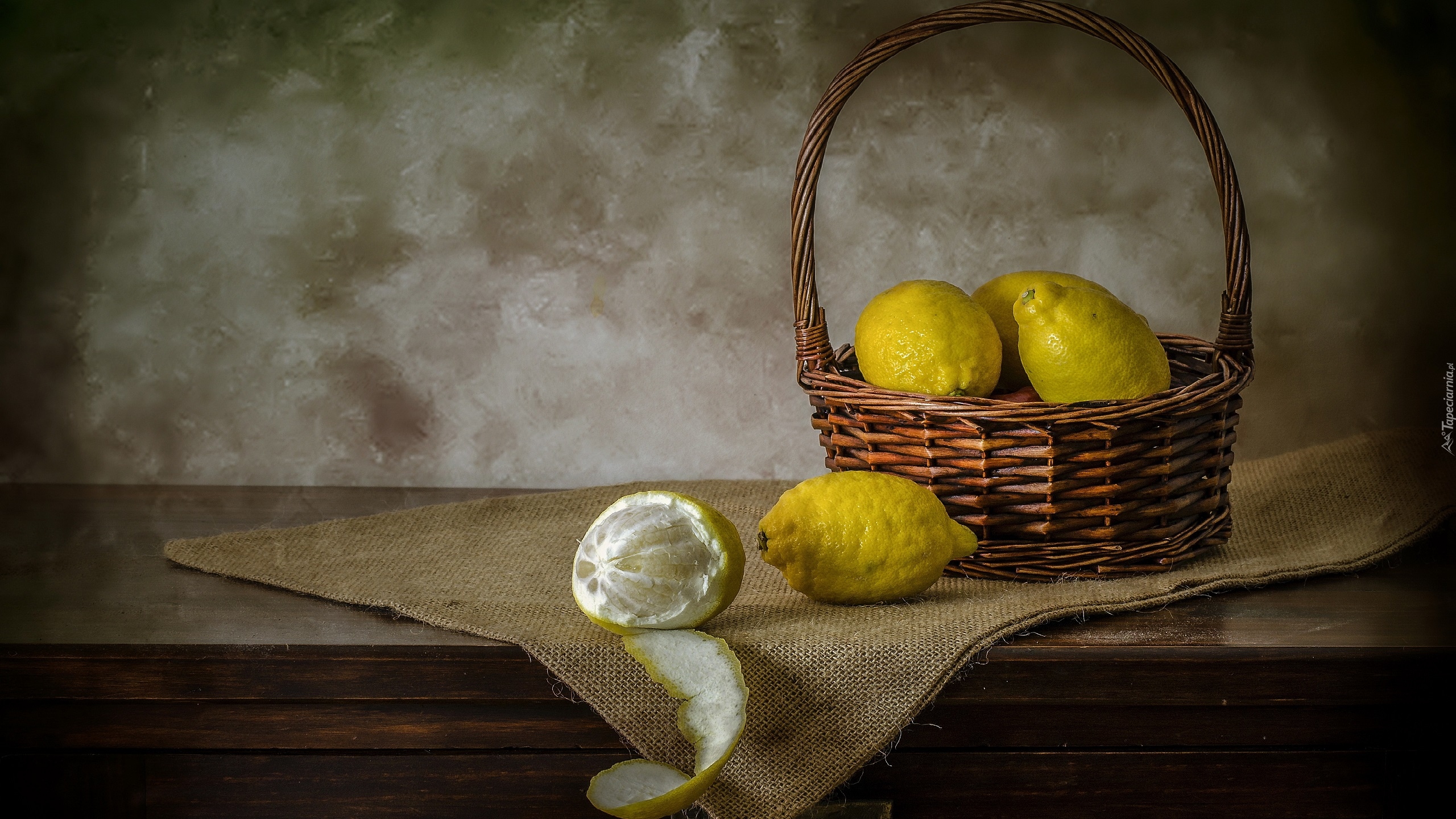 Edytor tapety: Cytryny w koszyku i położone obok na serwecie
