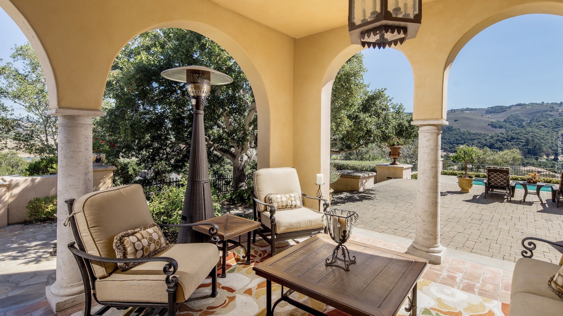 Edytor tapety: Patio z widokiem na zalesione wzgórza