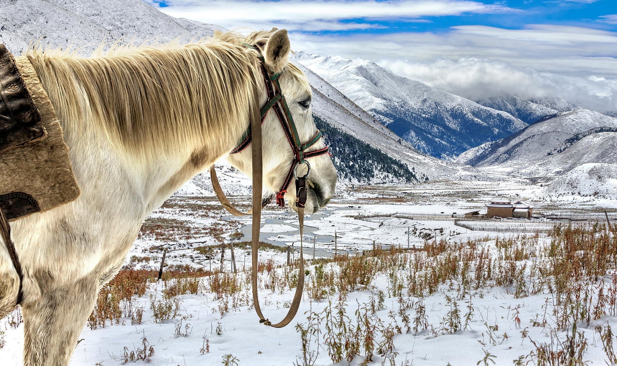 Edytor tapety: Koń w zaśnieżonych górach