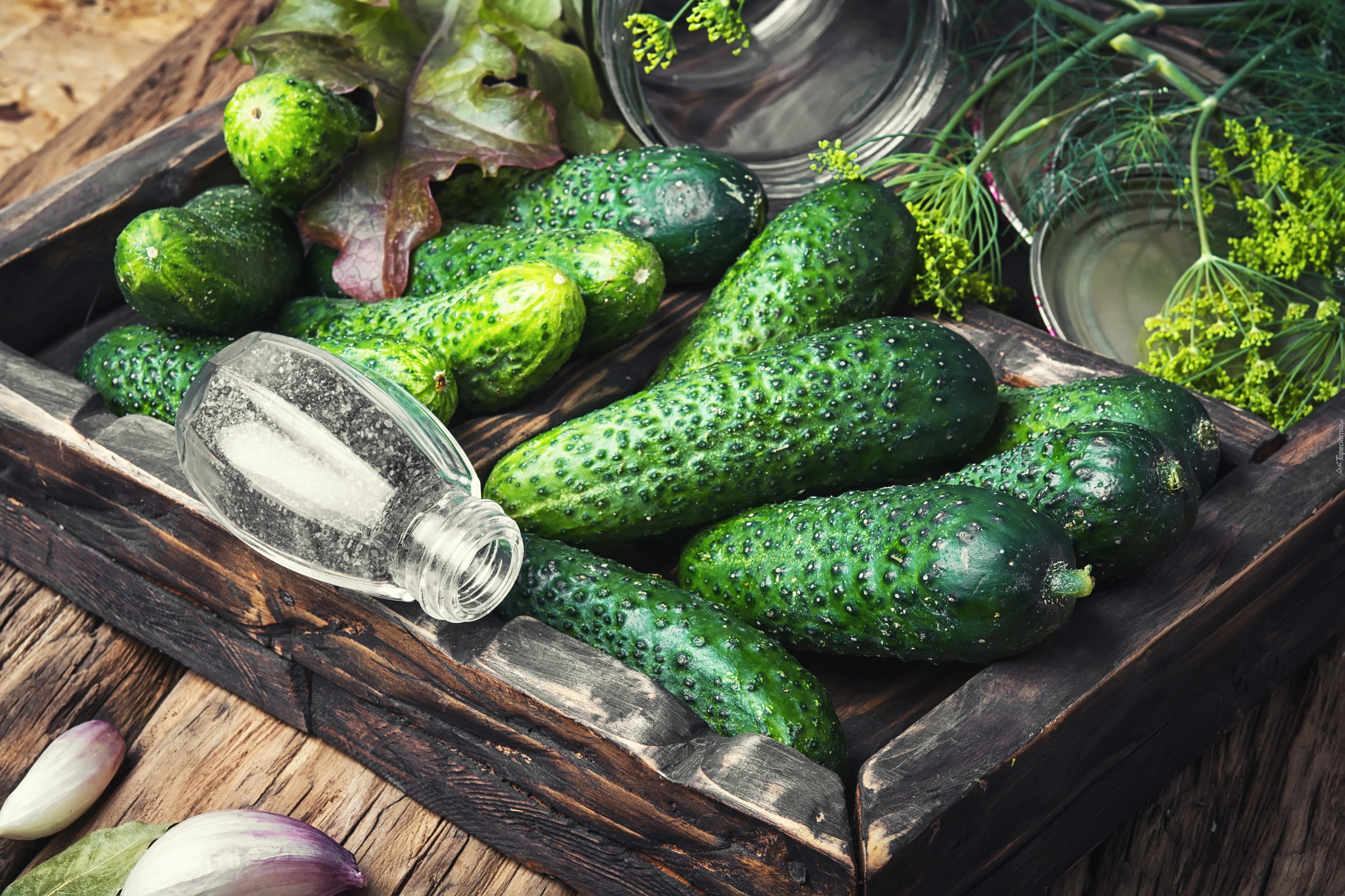 Edytor tapety: Zielone ogórki i koper przygotowane do kiszenia