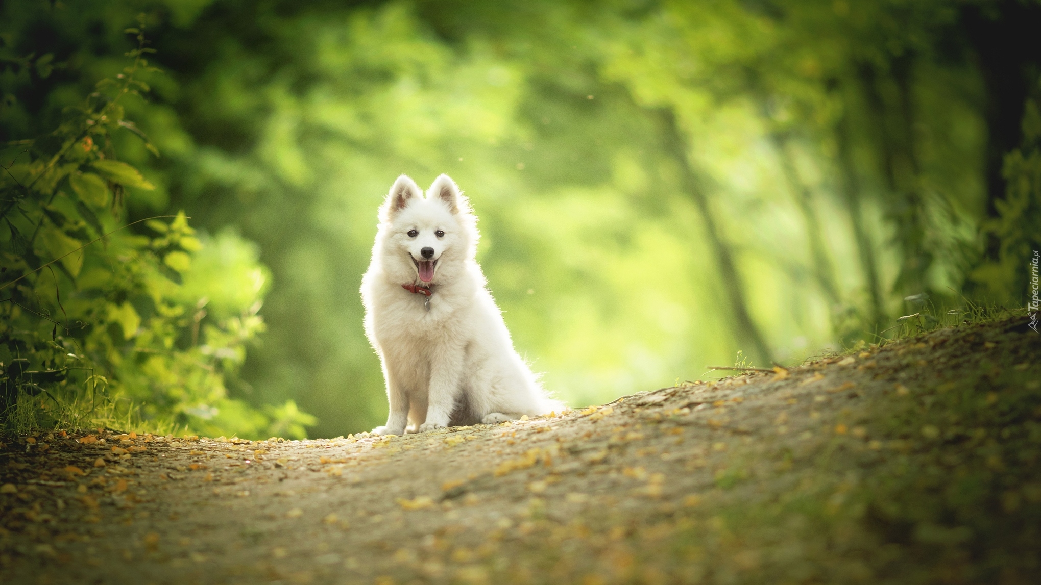 Edytor tapety: Pies rasy szpic na leśnej polanie