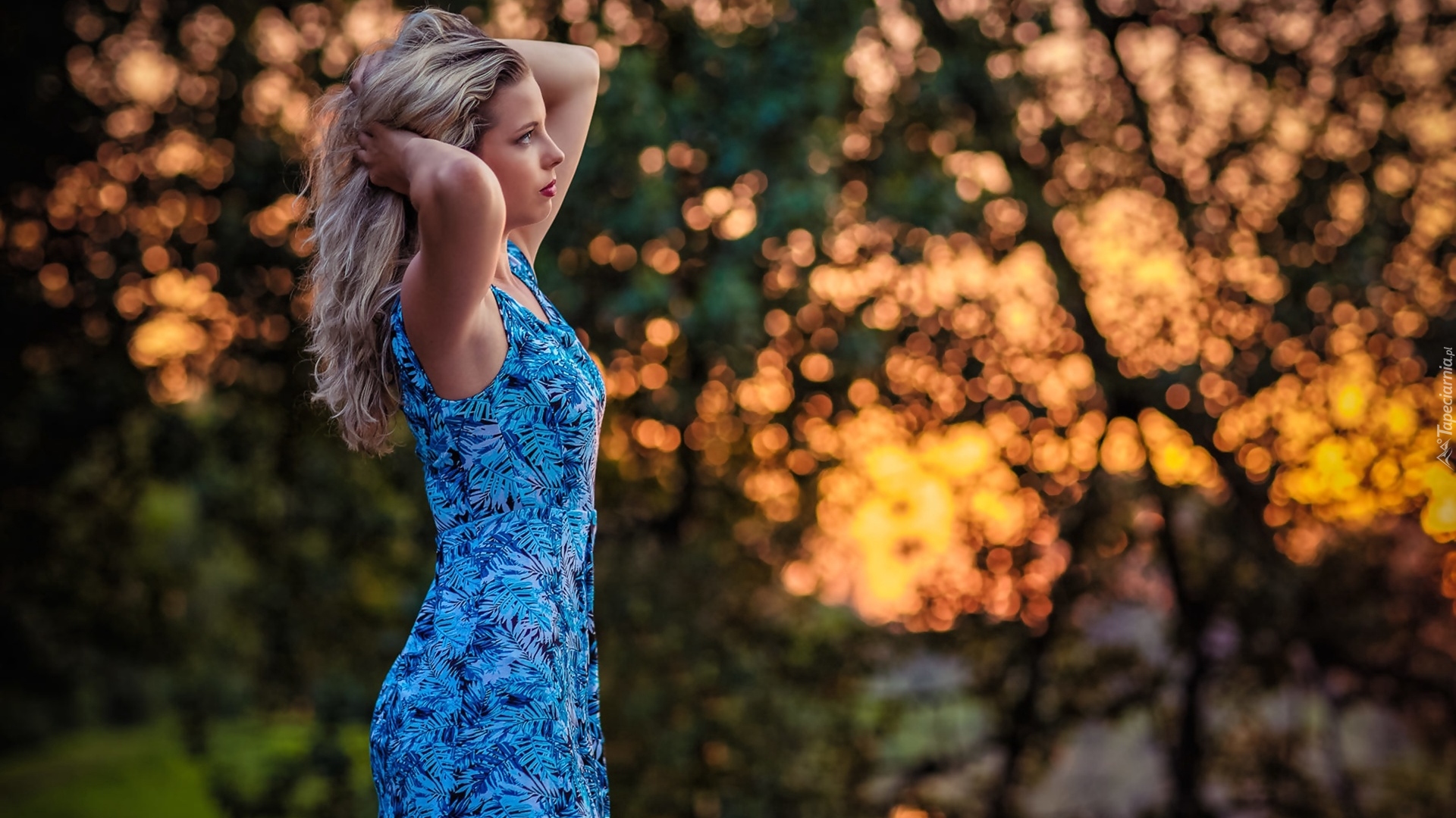 Edytor tapety: Blondynka w niebieskiej sukience