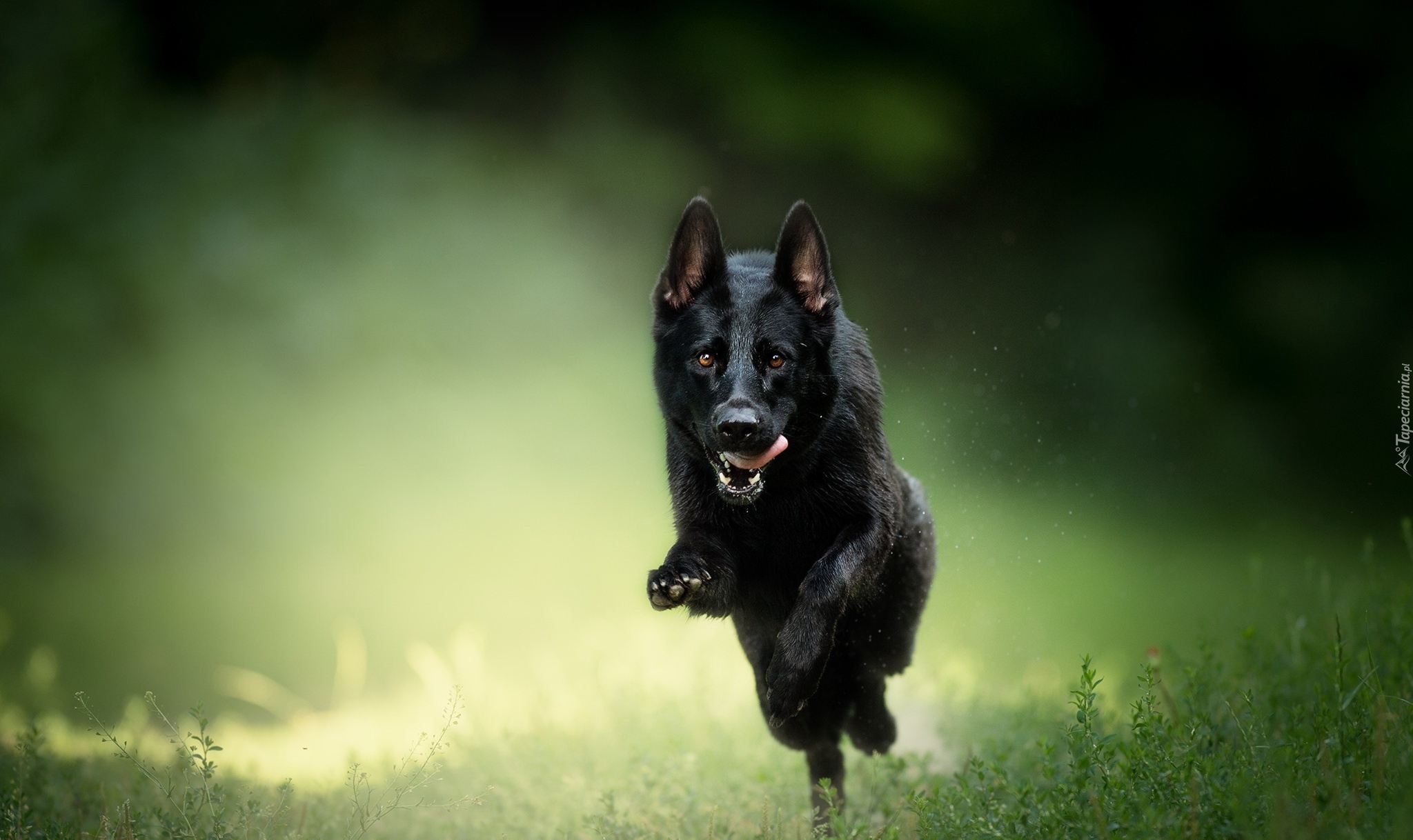 Edytor tapety: Czarny owczarek niemiecki w biegu
