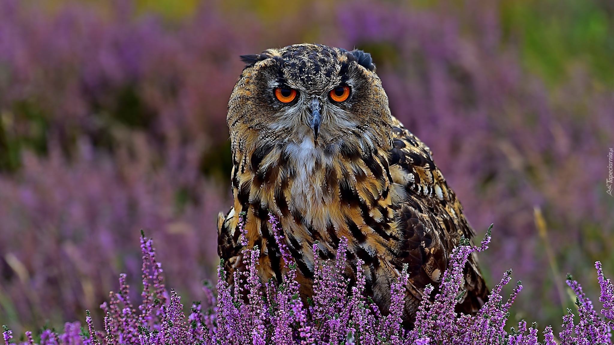 Edytor tapety: Puchacz zwyczajny wśród wrzosów