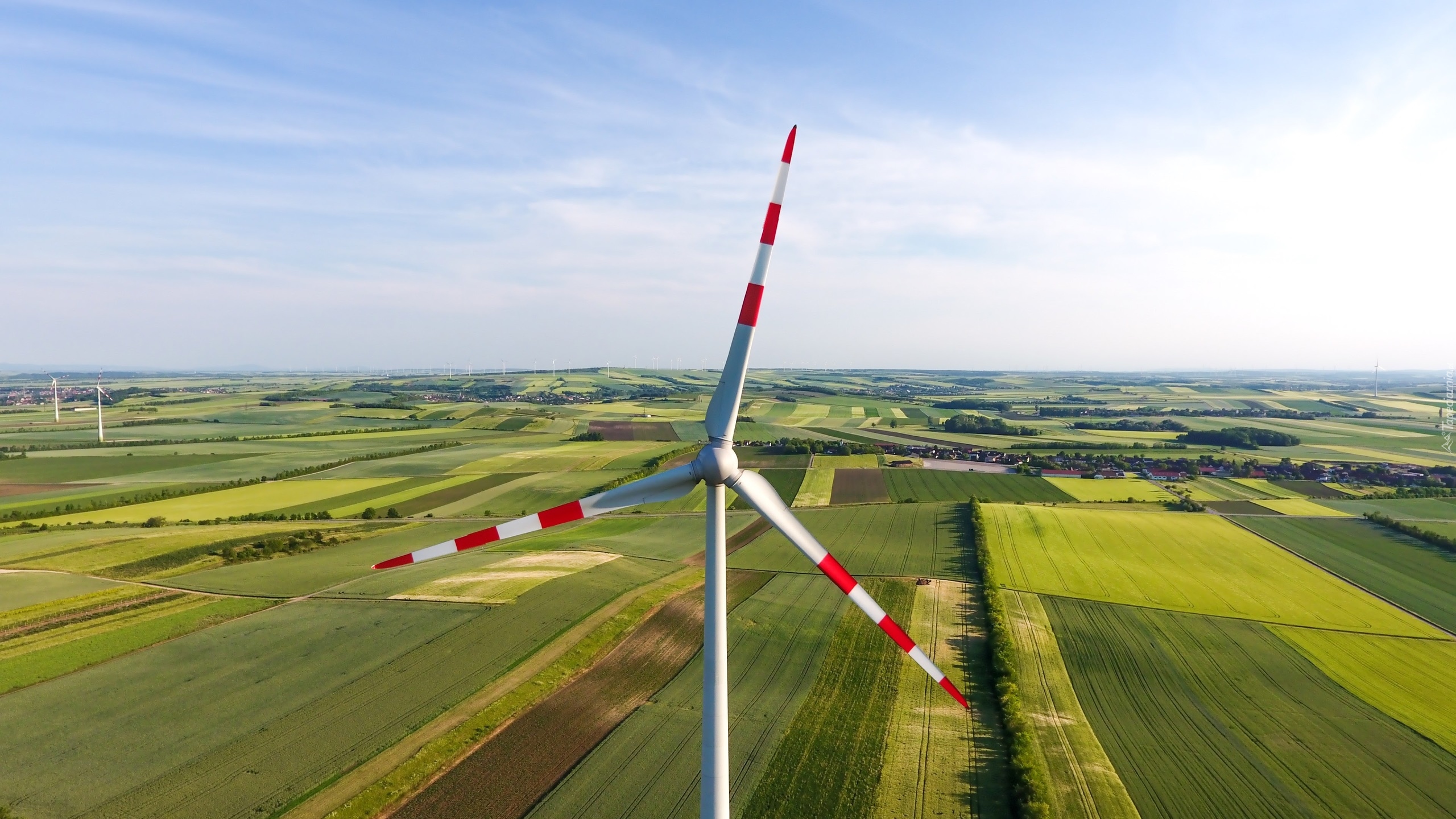 Edytor tapety: Turbiny wiatrowe na zielonych polach