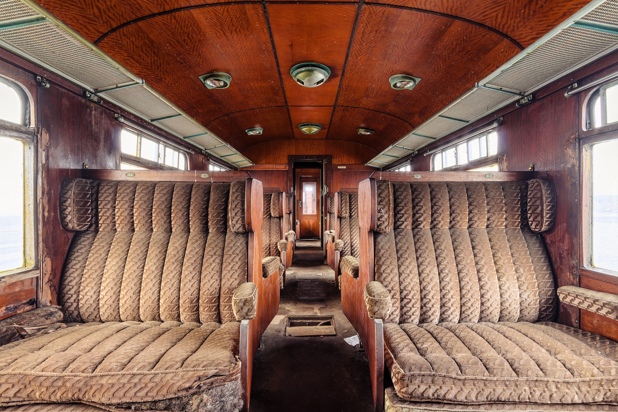 Edytor tapety: Stary kolejowy wagon z wyściełanymi siedzeniami