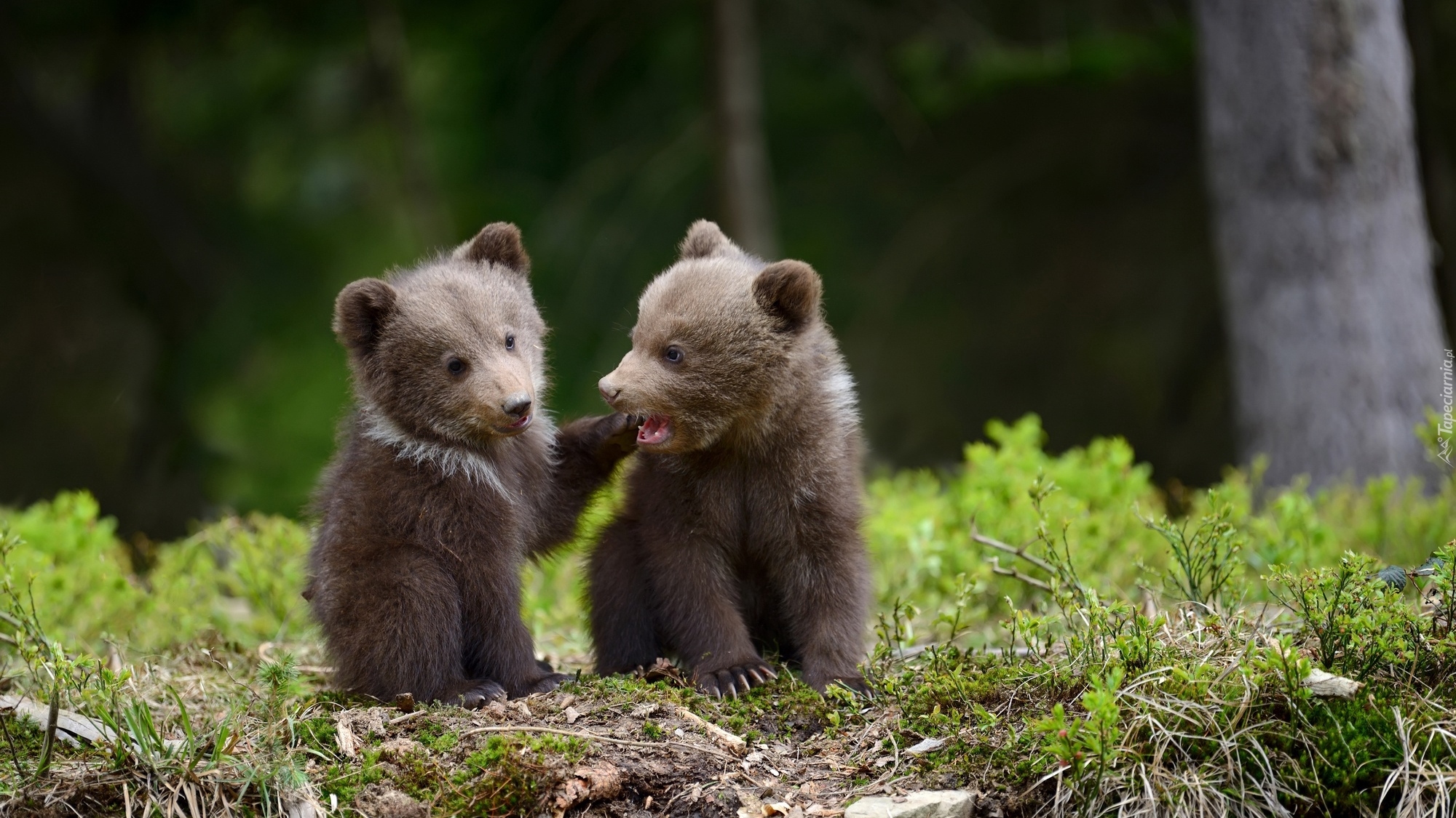 Edytor tapety: Dwa niedźwiadki brunatne na polanie