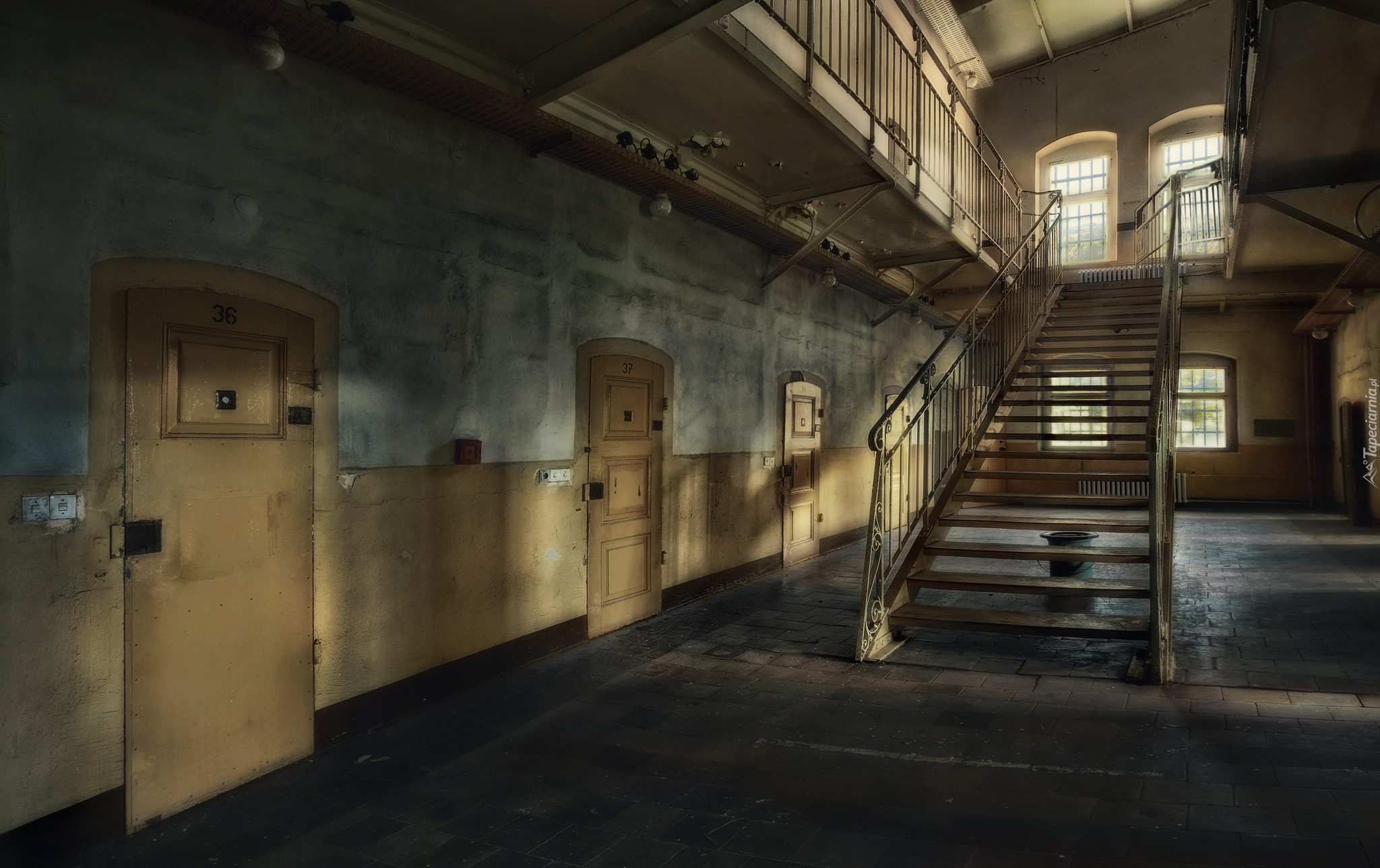 Edytor tapety: Więzienny korytarz ze schodami na piętro