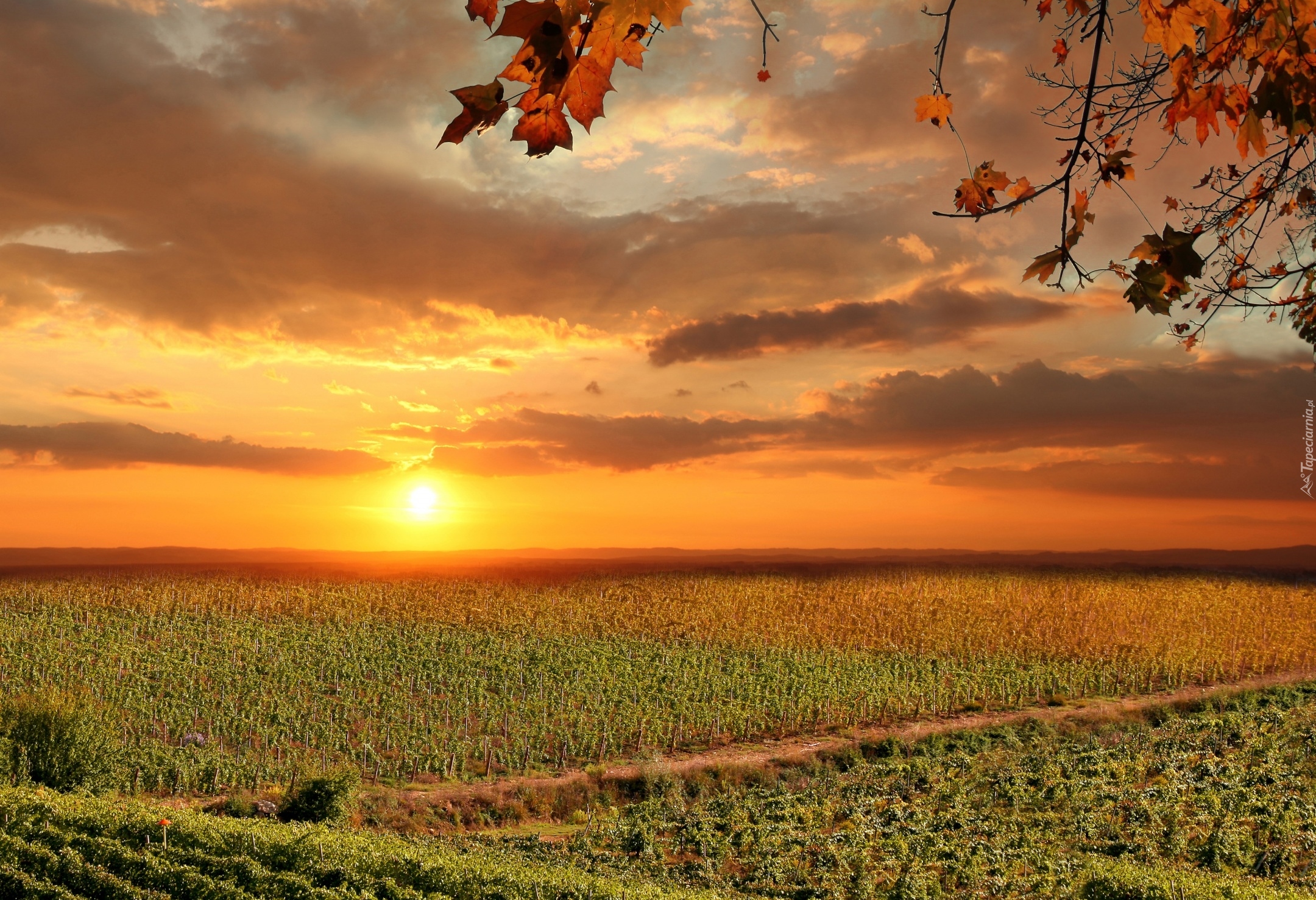 Edytor tapety: Toskańskie pola w promieniach wschodzącego słońca