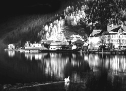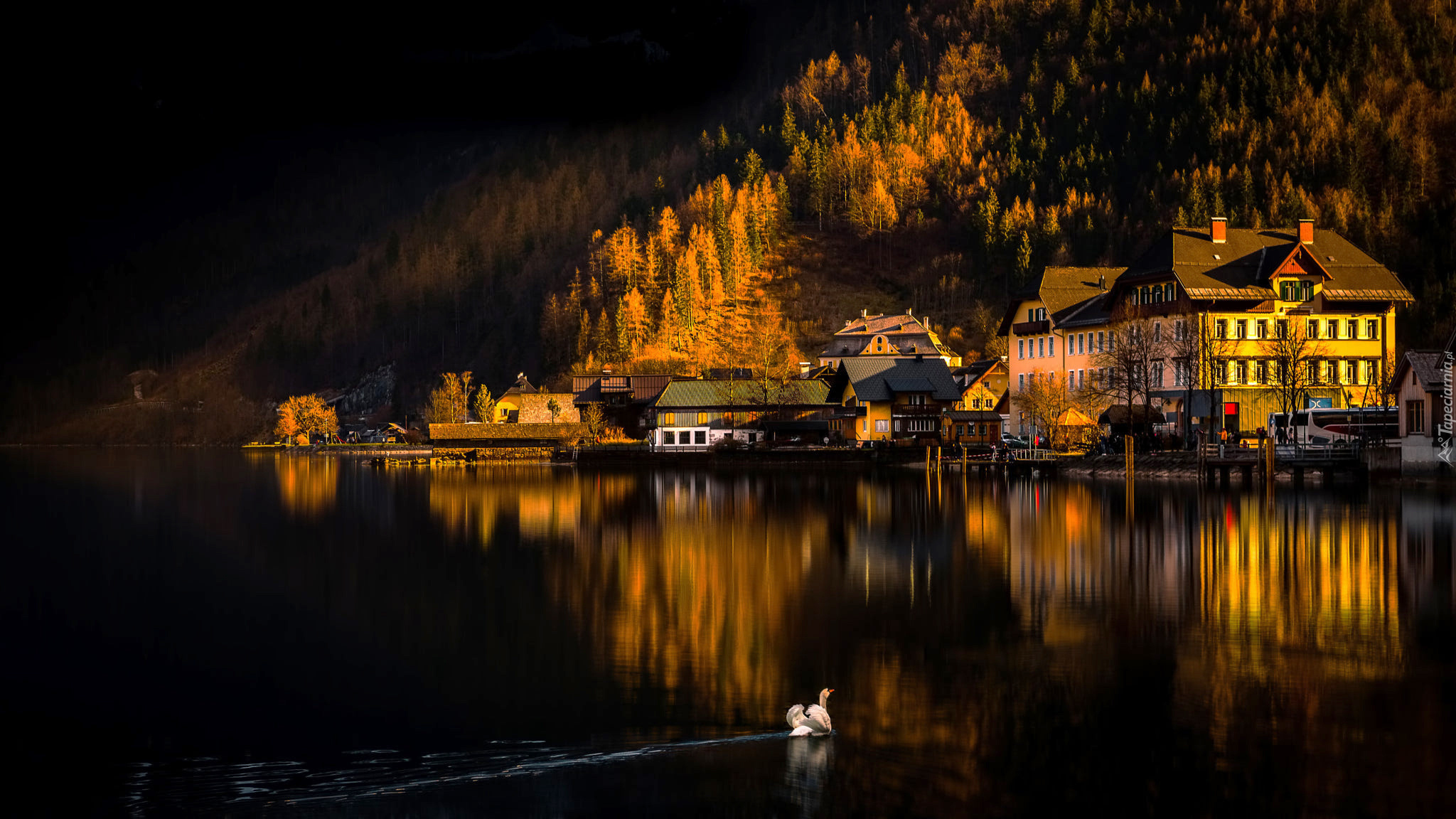 Edytor tapety: Miasteczko Hallstatt nad jeziorem Hallstättersee w Alpach Salzburskich