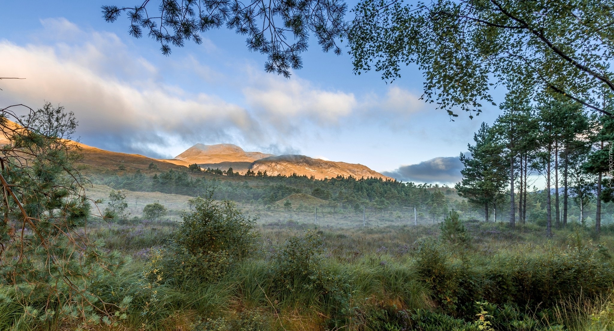 Edytor tapety: Drzewa i trawa w górach
