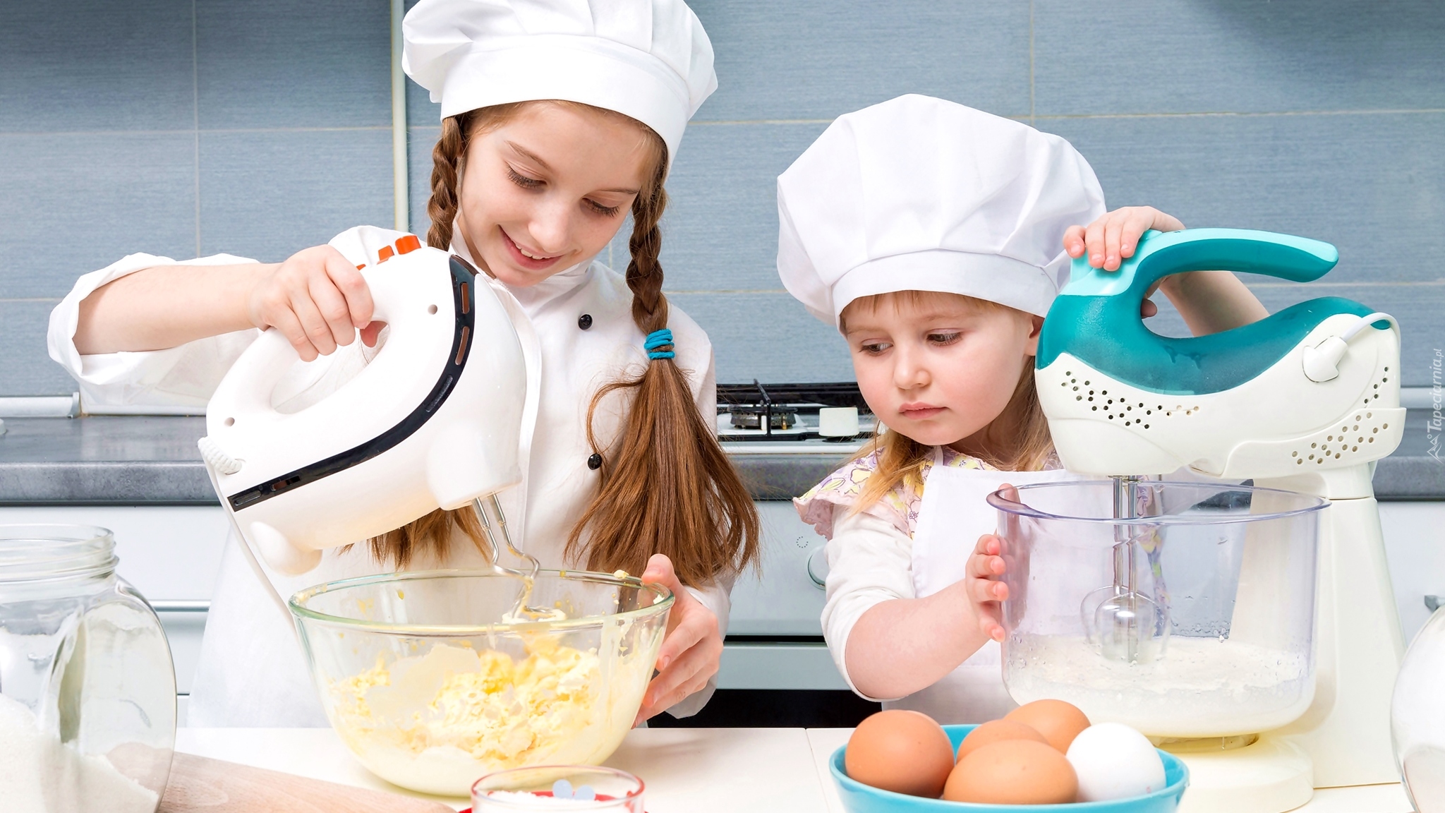 Edytor tapety: Dwie dziewczynki przygotowujące ciasto