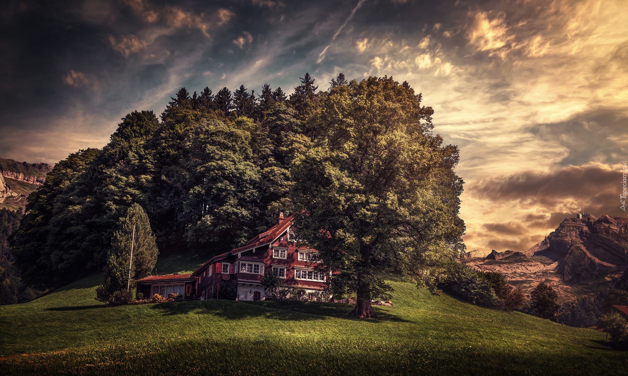 Edytor tapety: Dom w szwajcarskiej miejscowości Unterwasser w Alpach