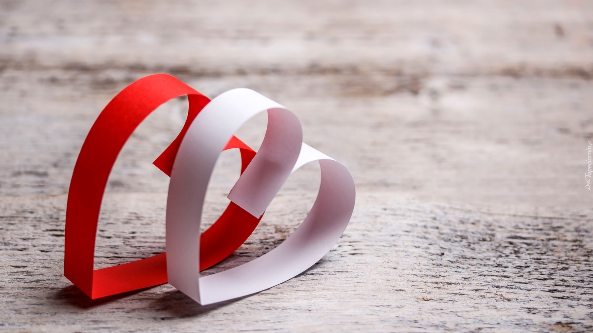 Edytor tapety: Dwa papierowe serduszka na rozmytym tle