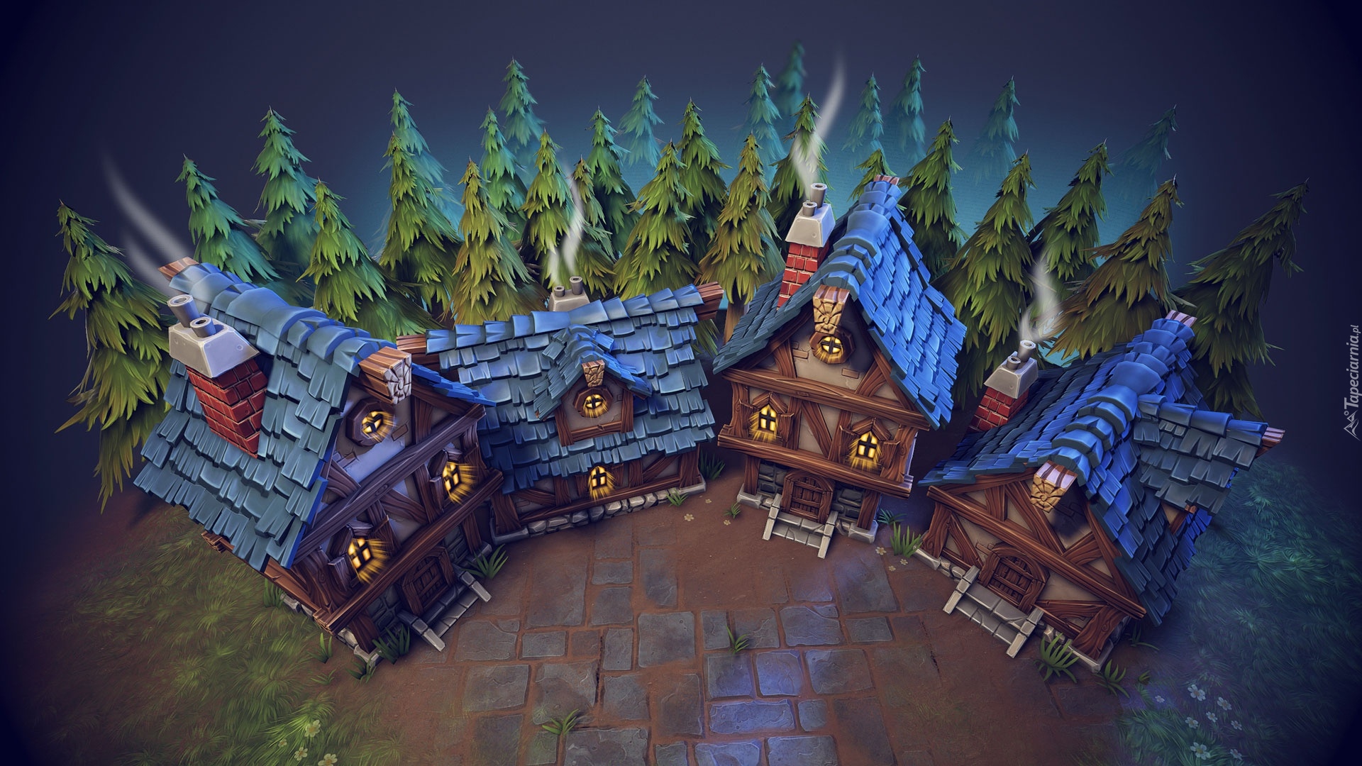 Edytor tapety: Bajkowe chatki w grafice 2D
