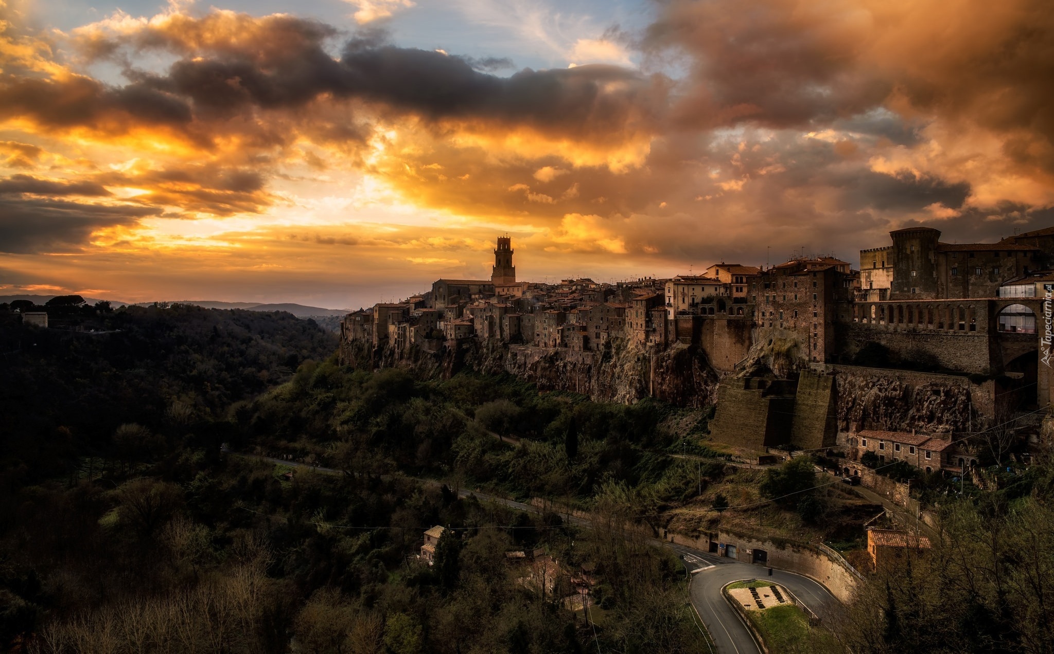 Edytor tapety: Włoskie Pitigliano o zachodzie słońca