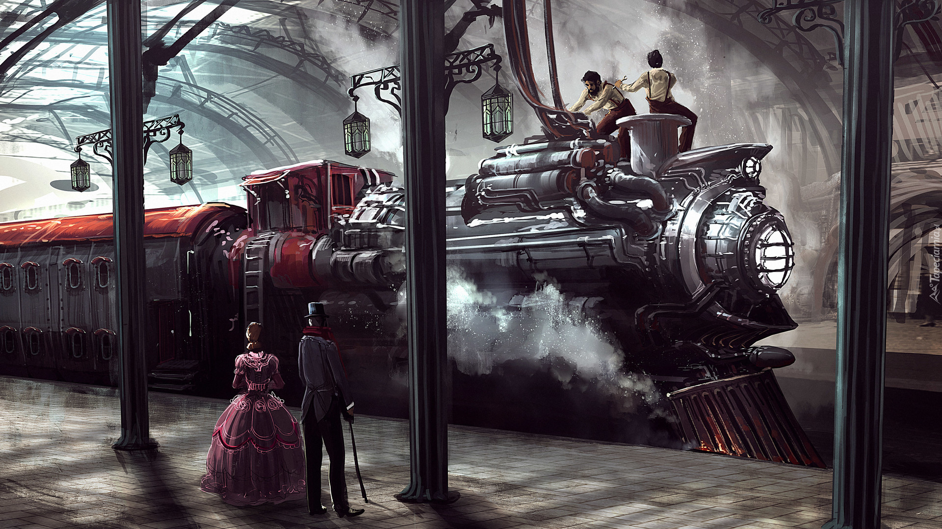 Edytor tapety: Wiekowa lokomotywa na dworcu