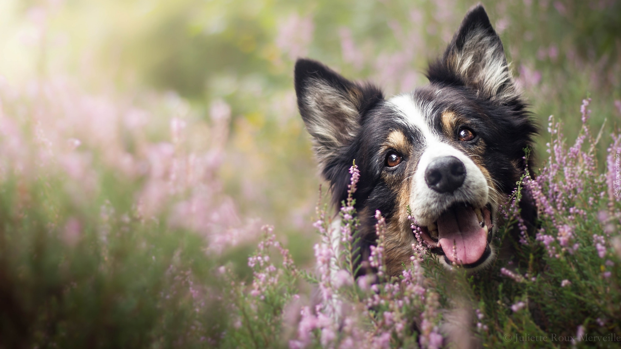 Edytor tapety: Mordka border collie we wrzosach