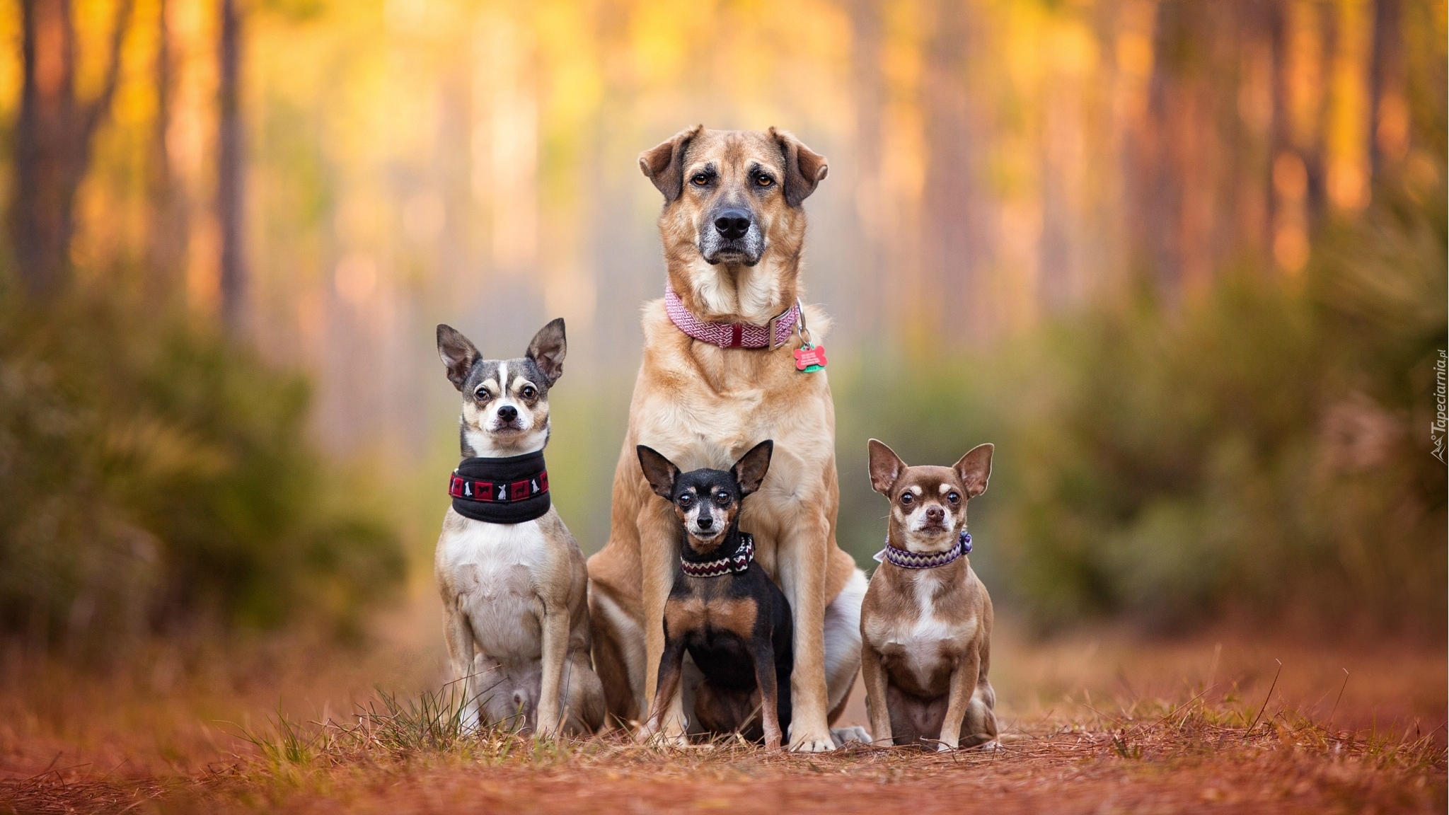 Edytor tapety: Cztery psy na polanie