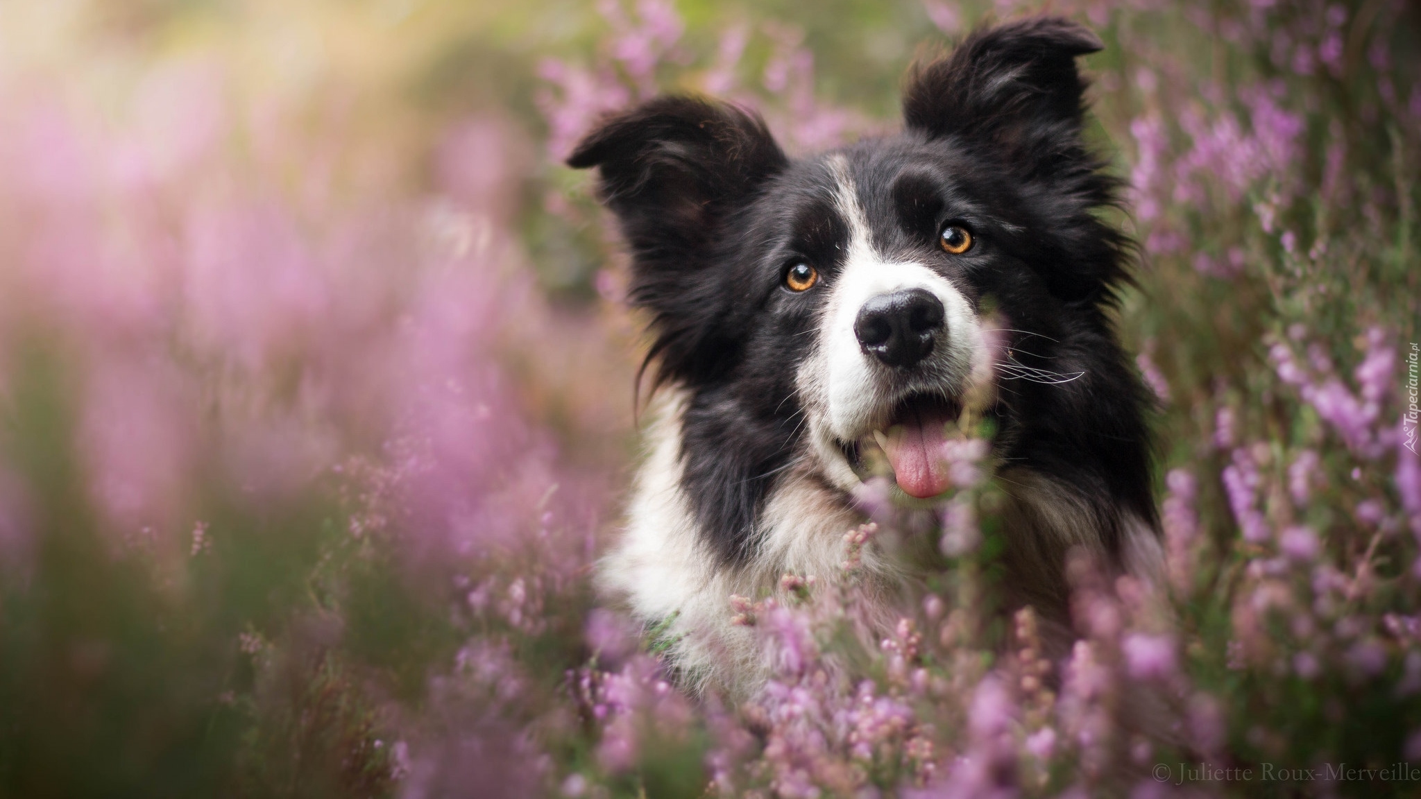 Edytor tapety: Mordka border collie we wrzosach