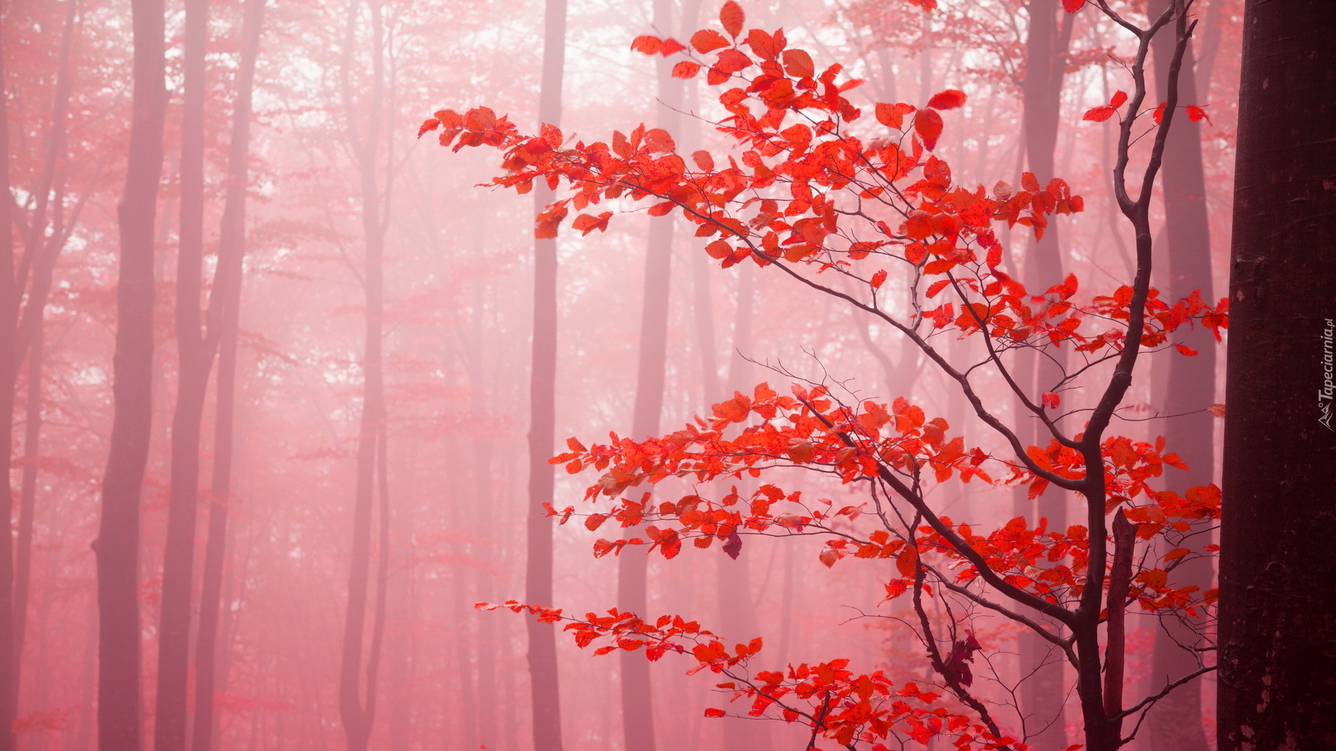 Edytor tapety: Drzewa jesiennego lasu w mgle