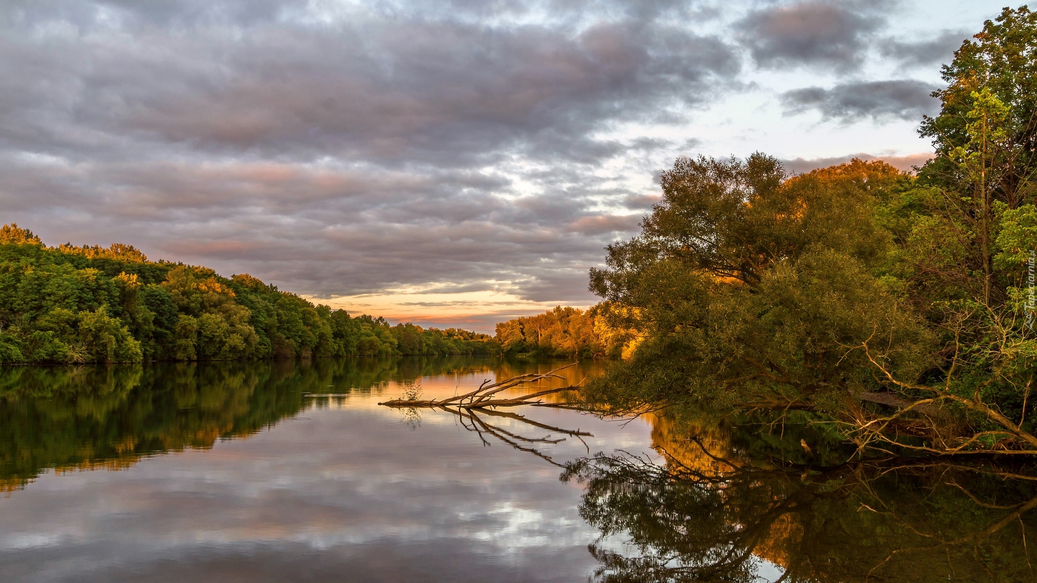 Edytor tapety: Pochylone nad rzeką gałęzie drzew