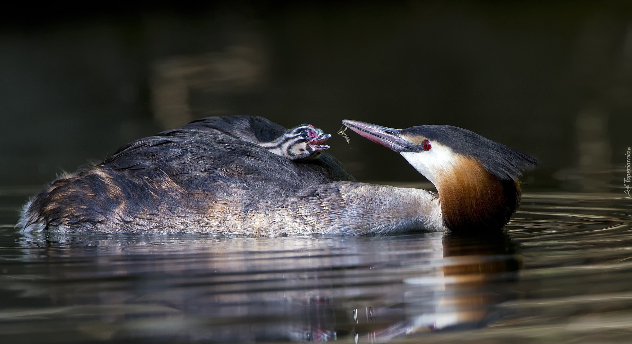 Edytor tapety: Perkoz dwuczuby karmiący owadem pisklę