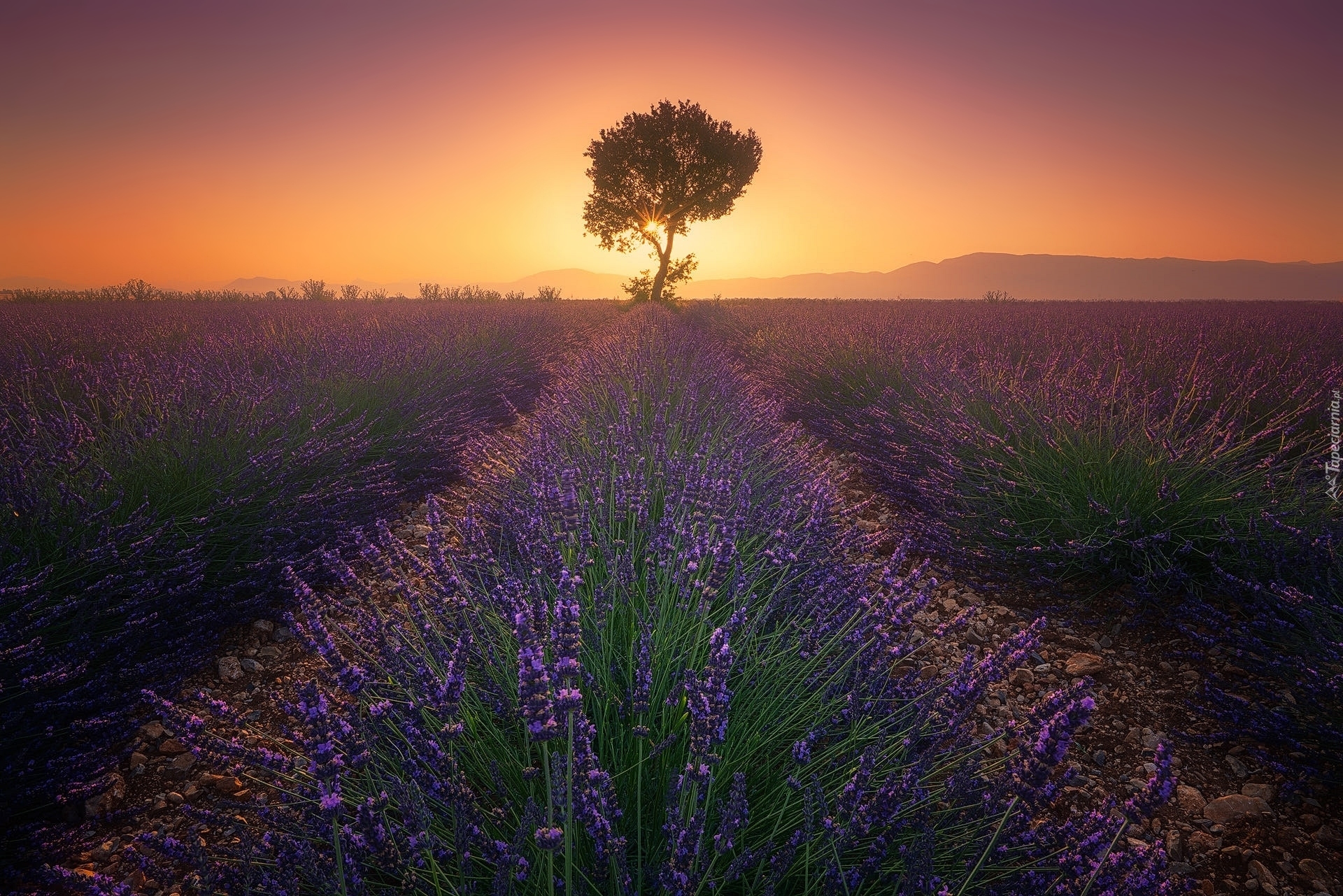 Edytor tapety: Drzewo na lawendowym polu w Valensole we Francji