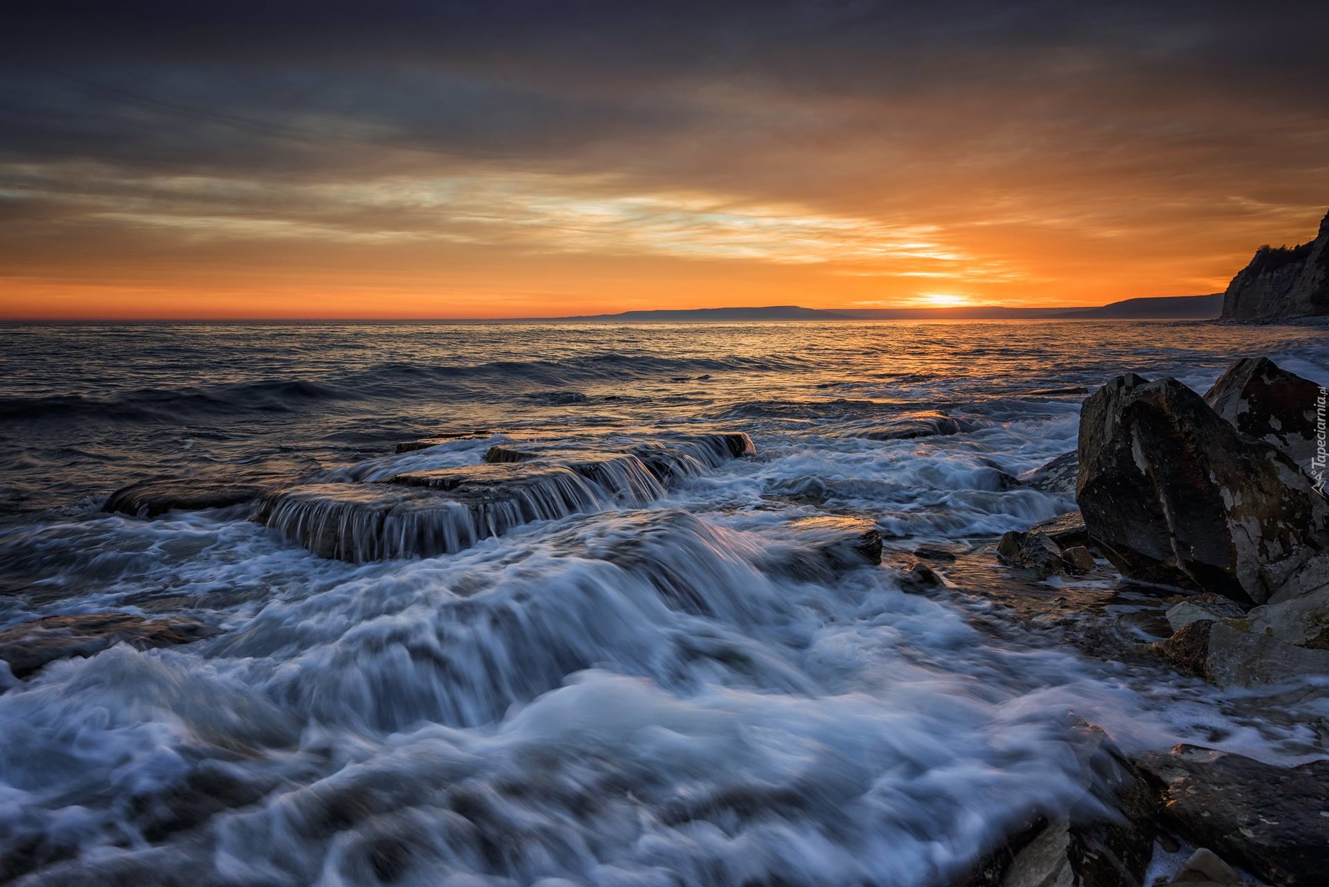 Edytor tapety: Morskie fale na skałach o zachodzie słońca