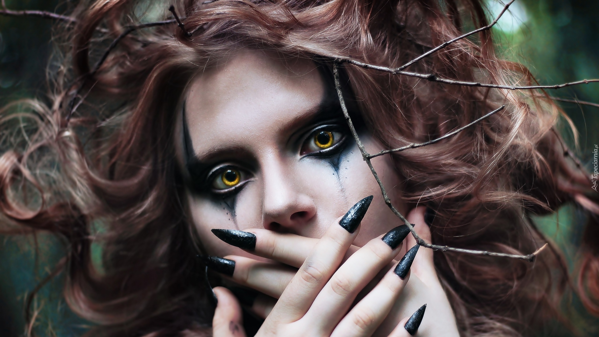 Edytor tapety: Wystraszona kobieta z upiornym makijażem