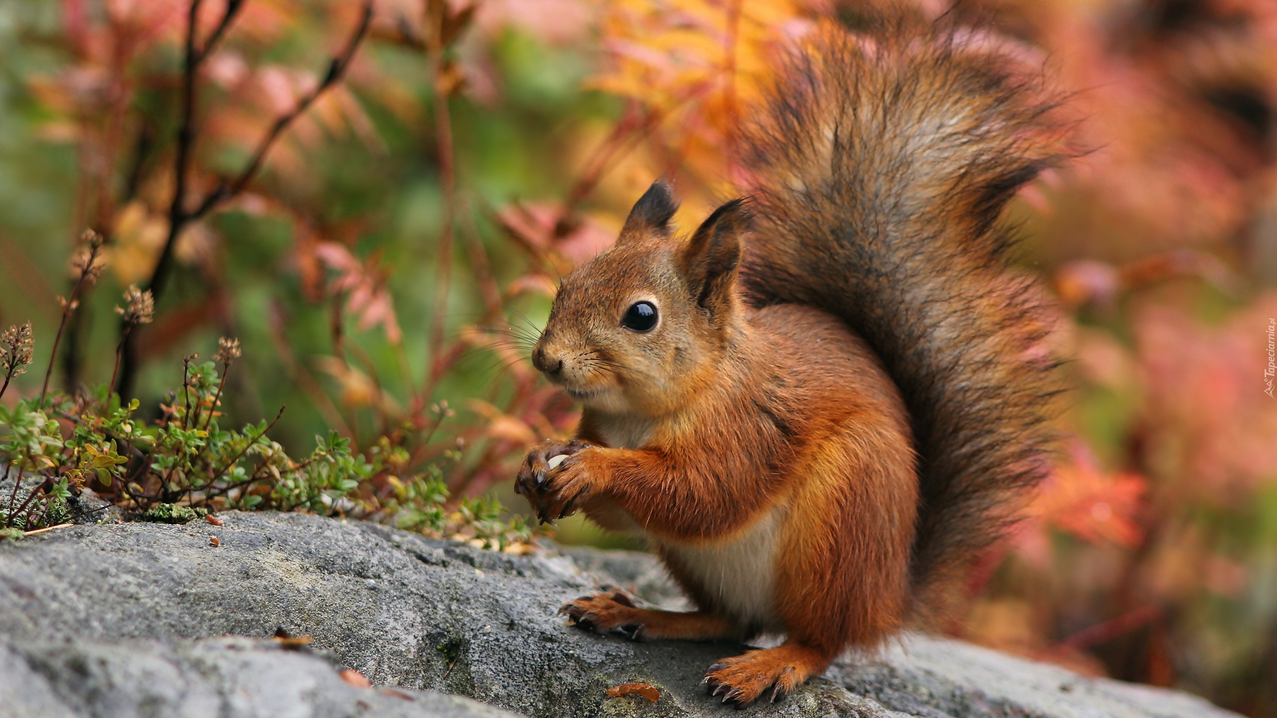 Edytor tapety: Ruda wiewiórka z orzeszkiem w łapkach