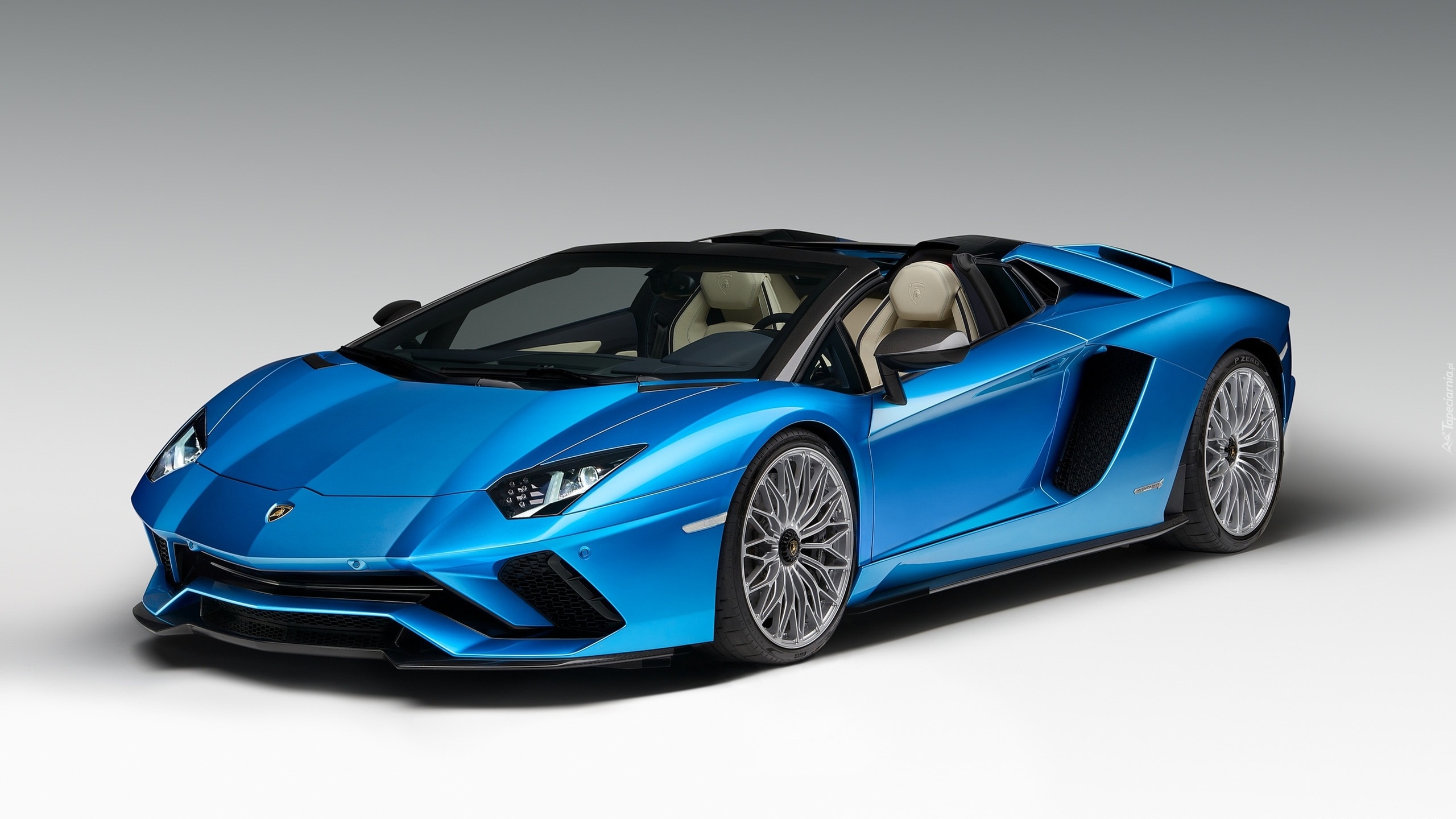 Edytor tapety: Niebieskie Lamborghini Aventador S Roadster 2018