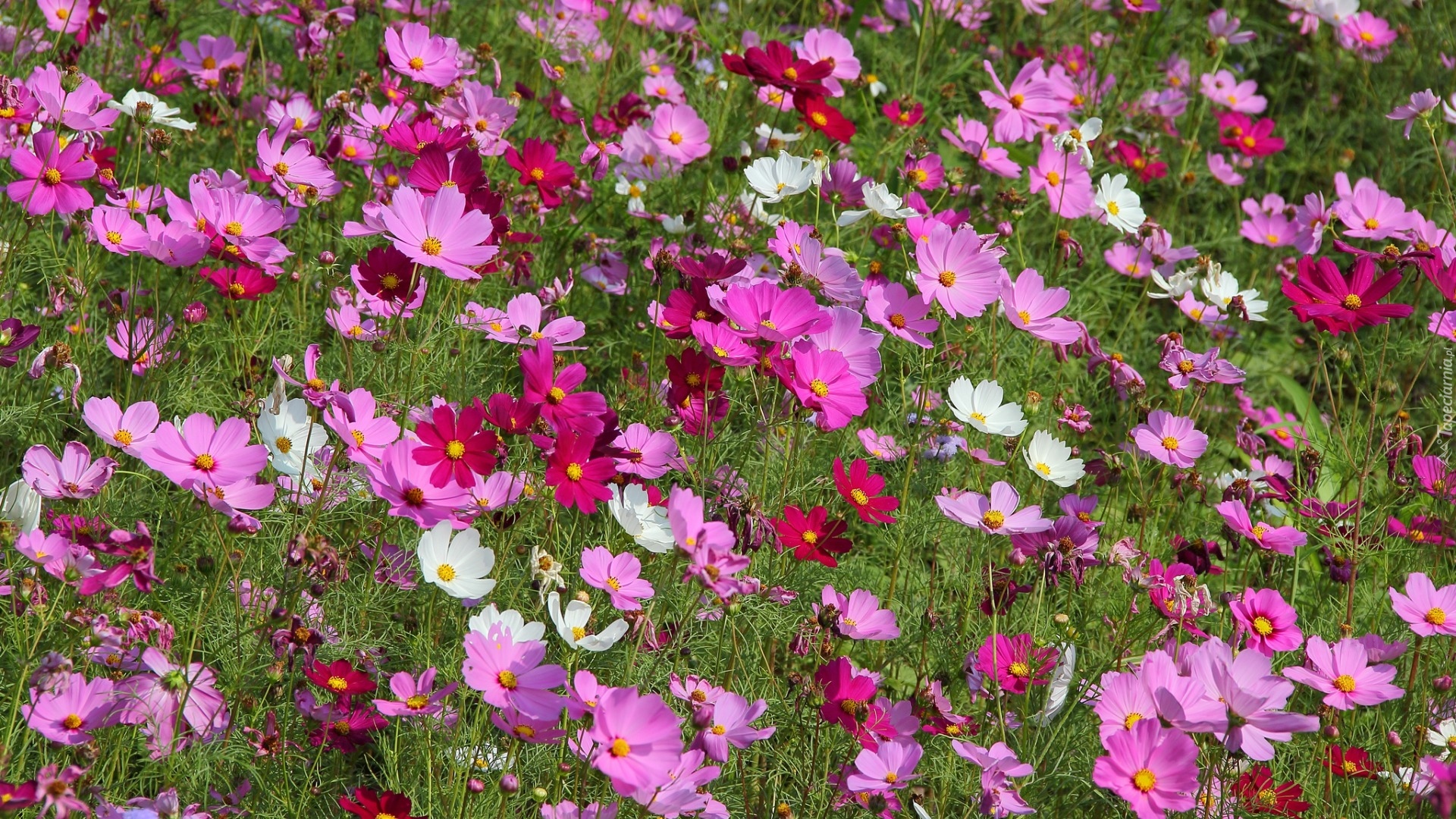 Edytor tapety: Kolorowe kwiaty kosmei na łące