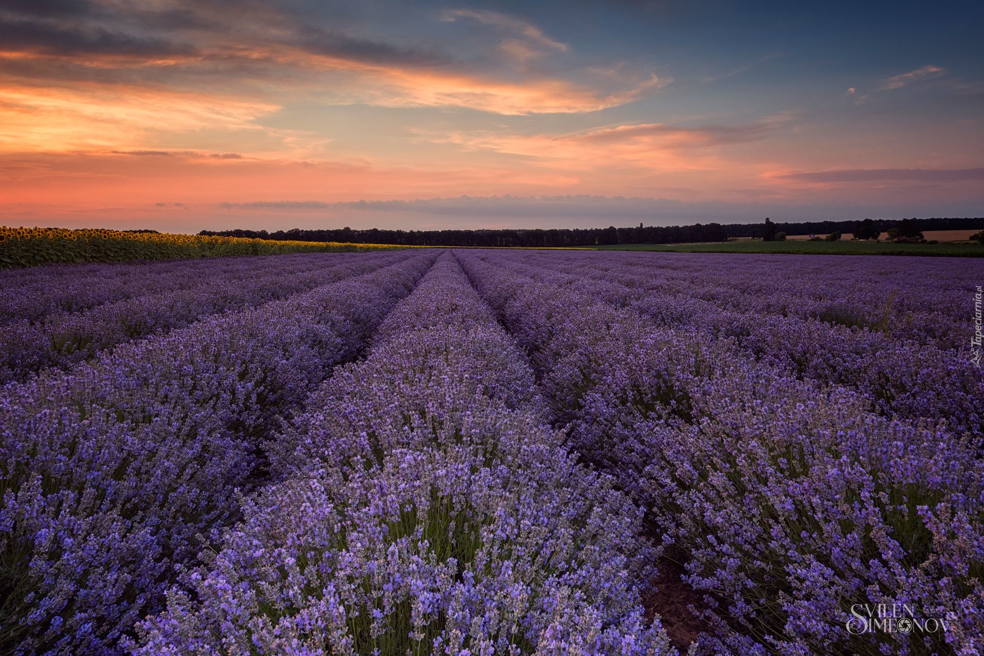 Edytor tapety: Lawendowe pole w blasku zachodzącego słońca